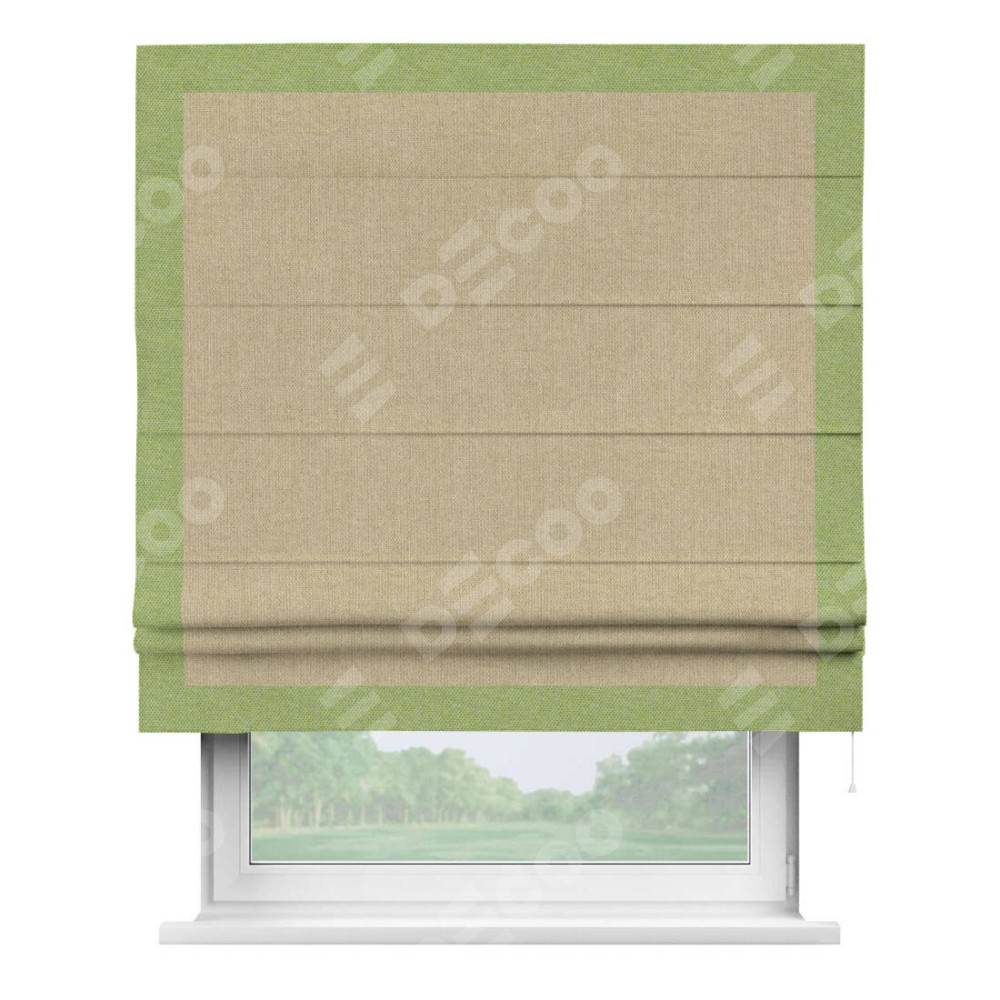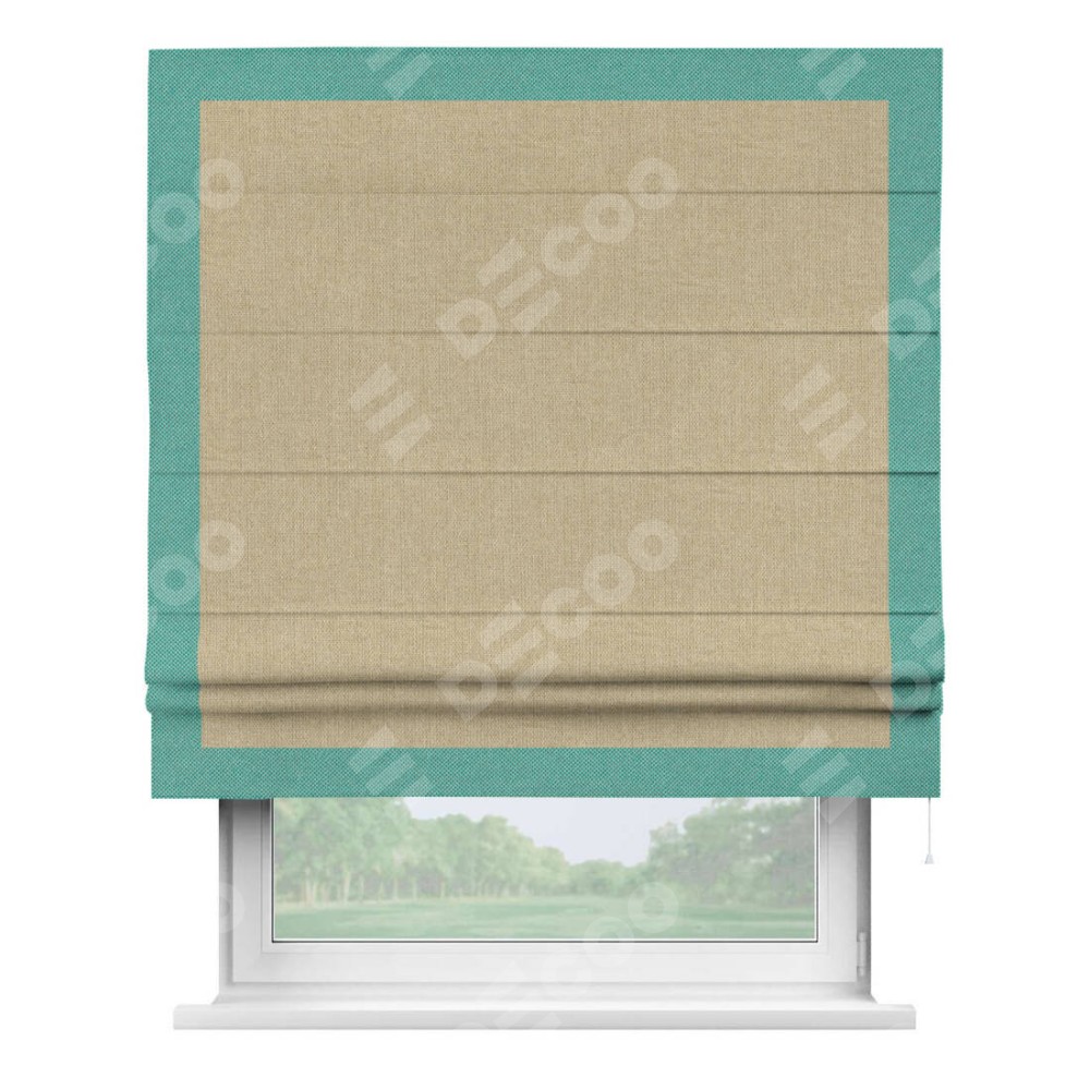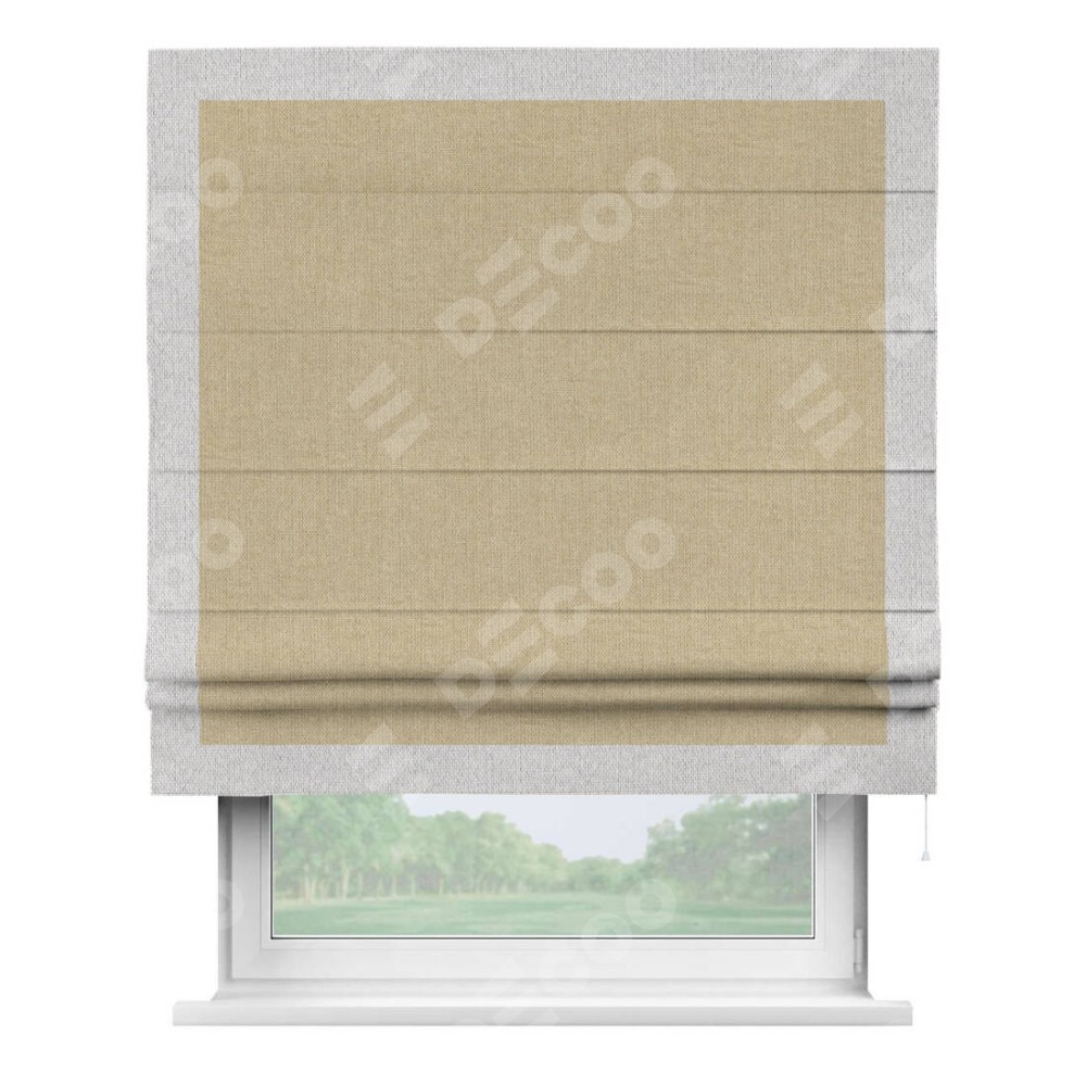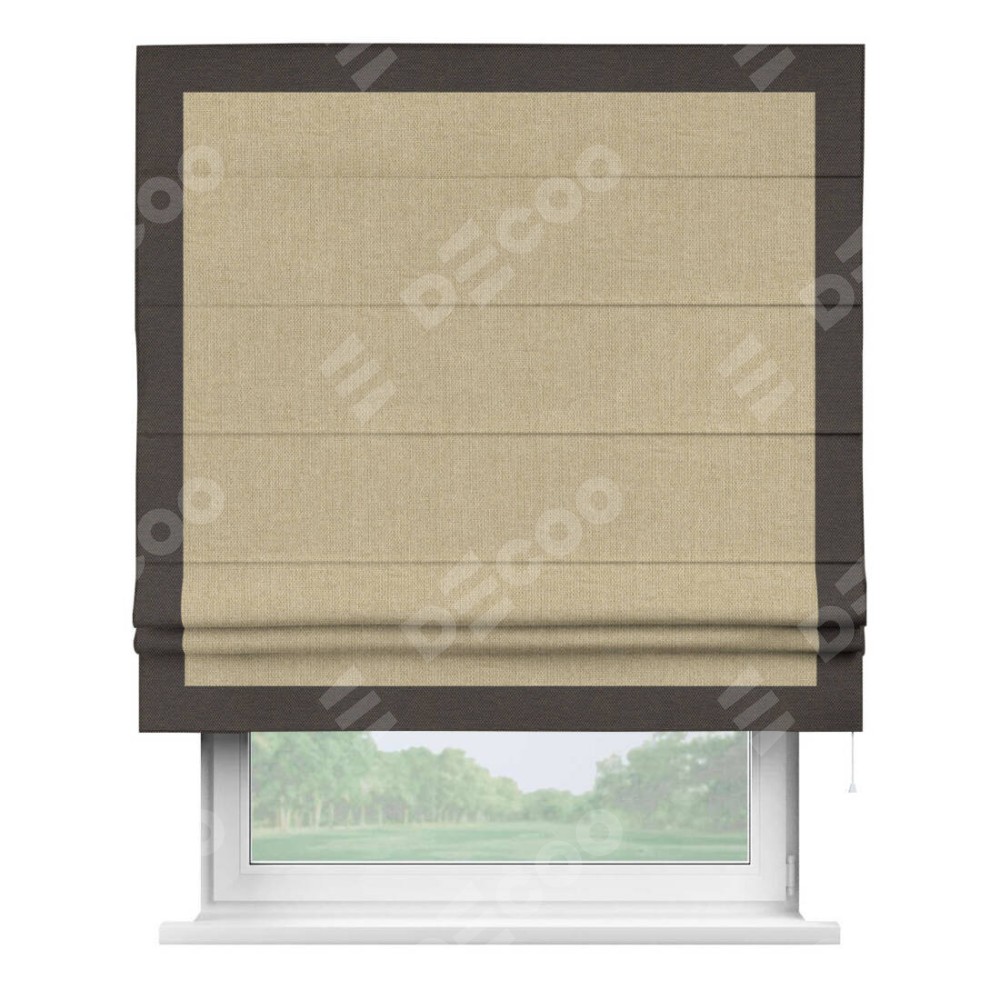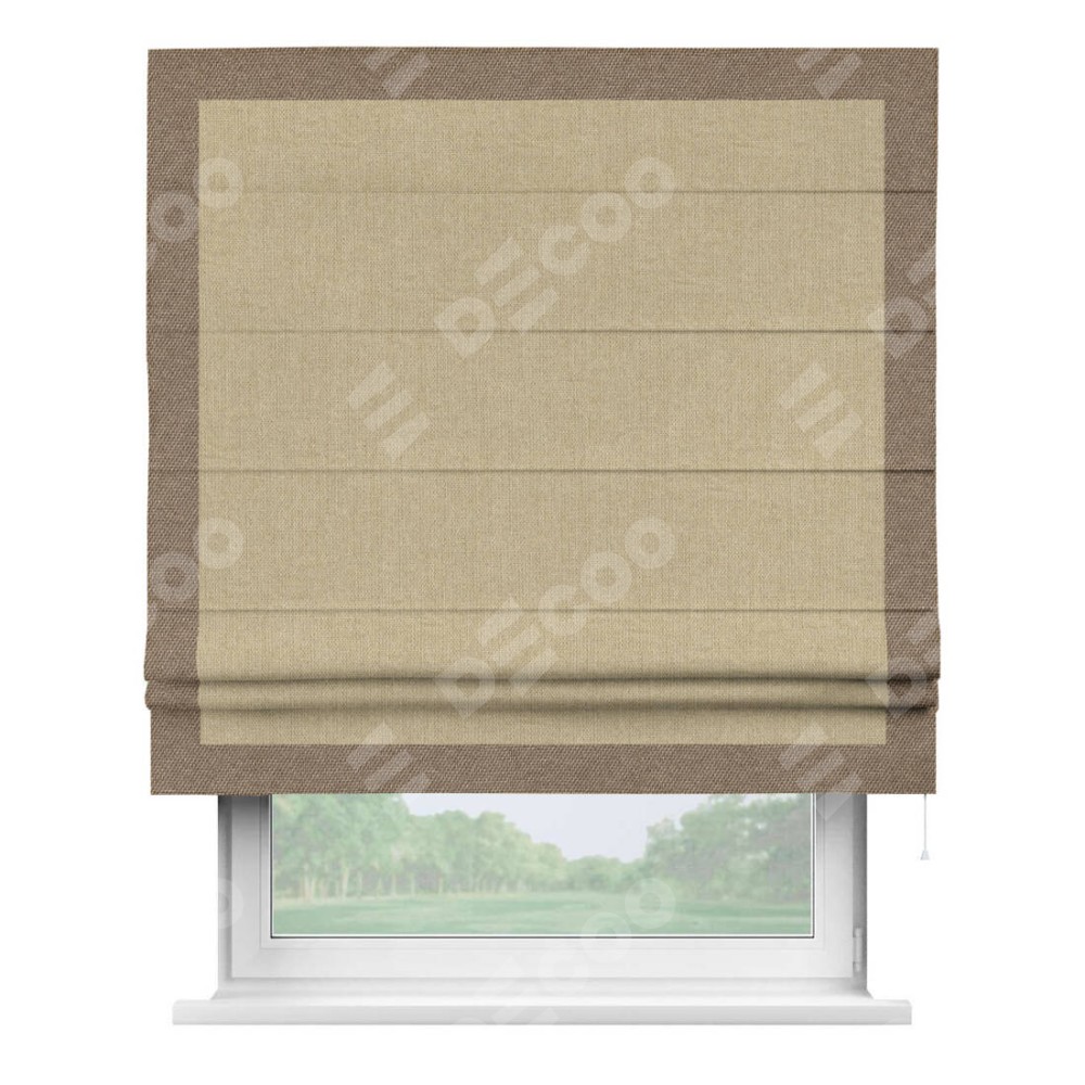 Римская штора «Кортин» для проема, лён димаут песочный с кантом Чесс