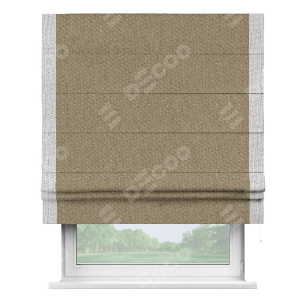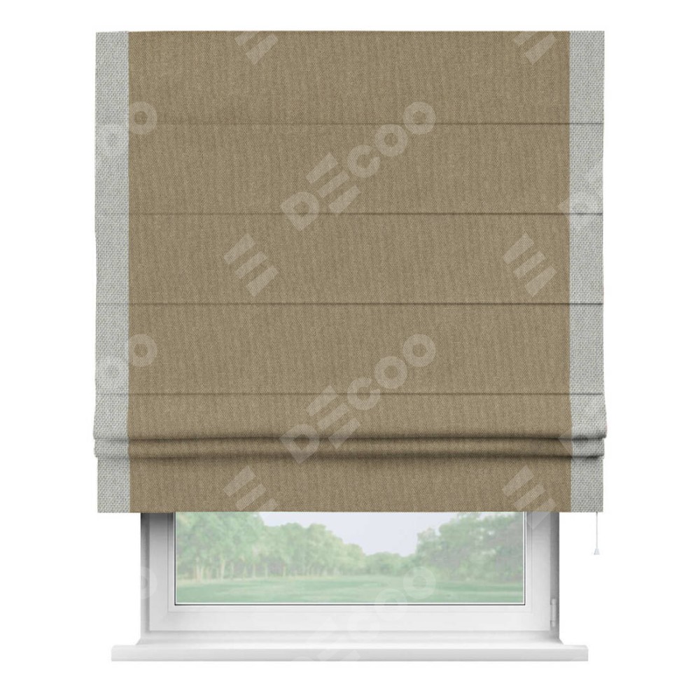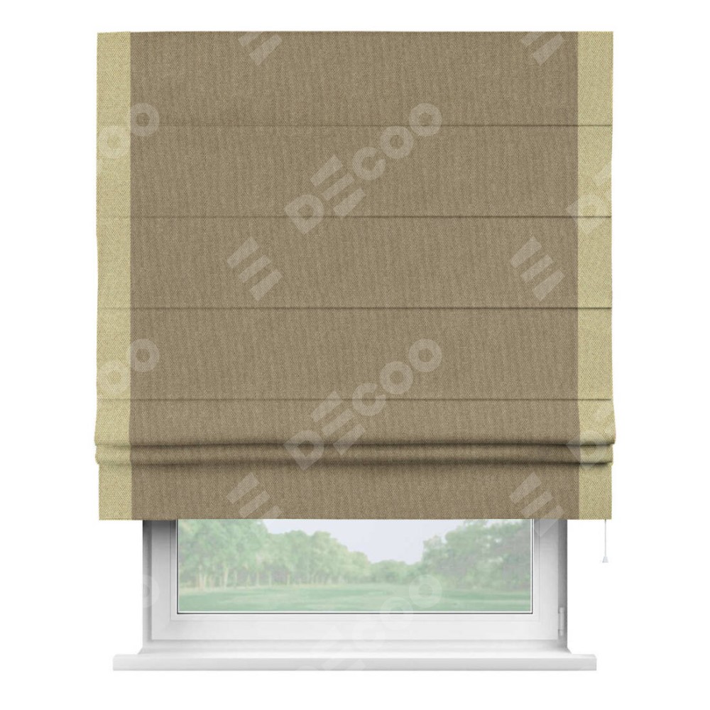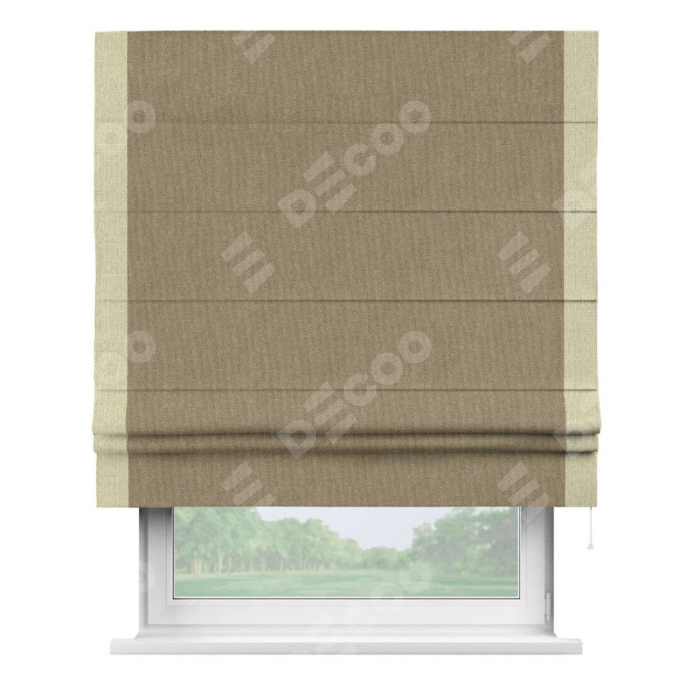 Римская штора «Кортин» для проема, лён димаут тёмно-бежевый с кантом Стрим Дуо
