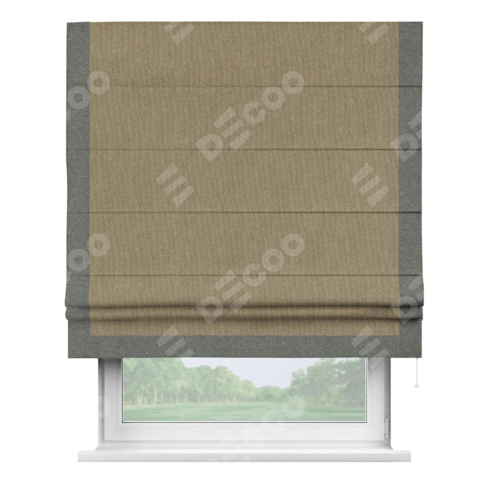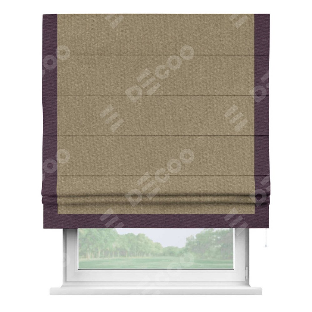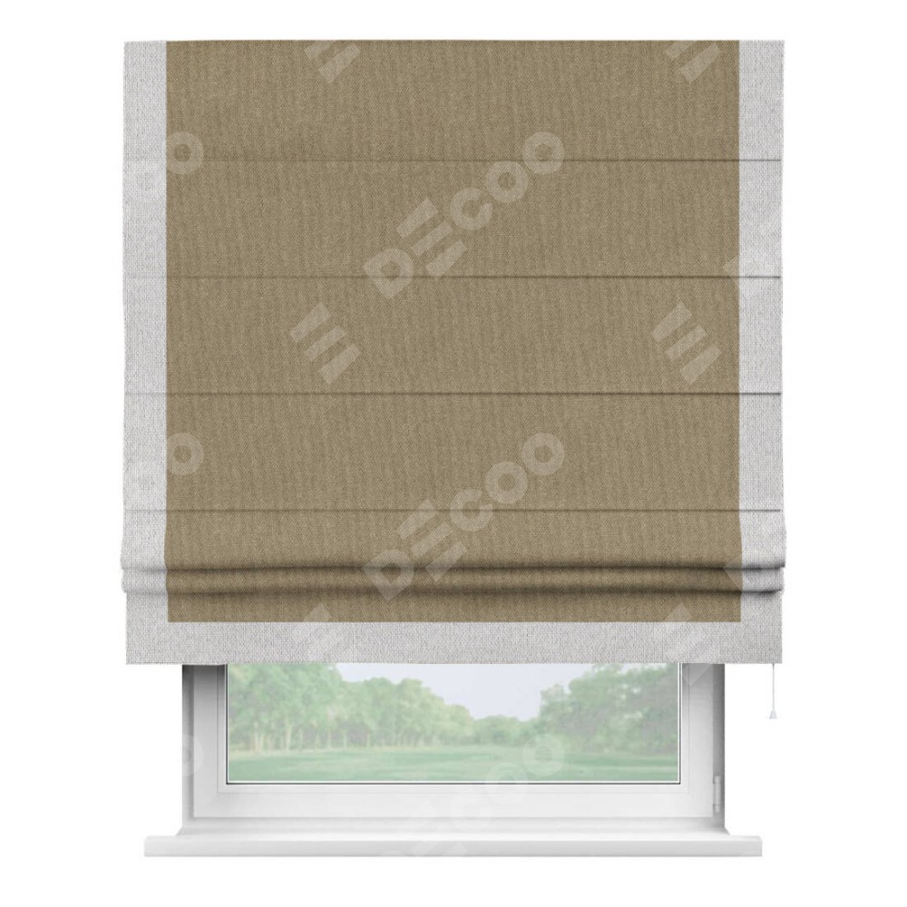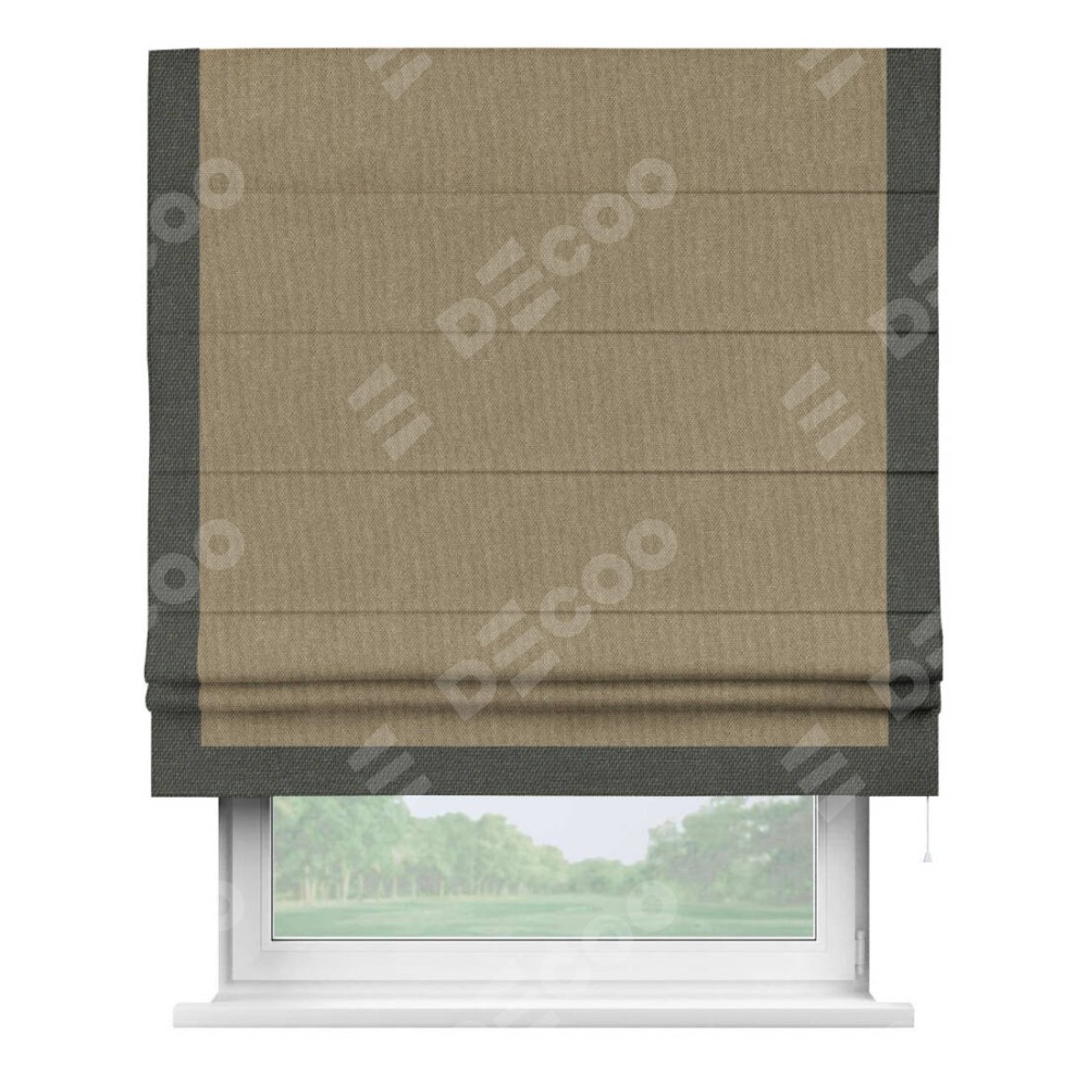 Римская штора «Кортин» для проема, лён димаут тёмно-бежевый с кантом Виктория