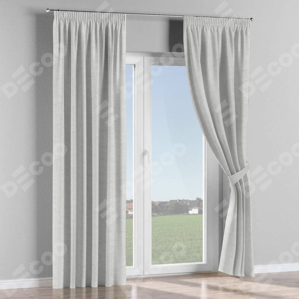 Комплект прямых штор, от производителя «Cortin», пошиты из ткани софт мрамор белый, артикул ткани 93581. С изнаночной стороны в верхней части штор пристрачивается шторная лента с декоративными складками «Карандаш». Для создания элегантных складок прямые шторы шьются по стандарту с коэффициентом 1:2 (на 100 см. ширины проёма 200 см. ширины ткани).