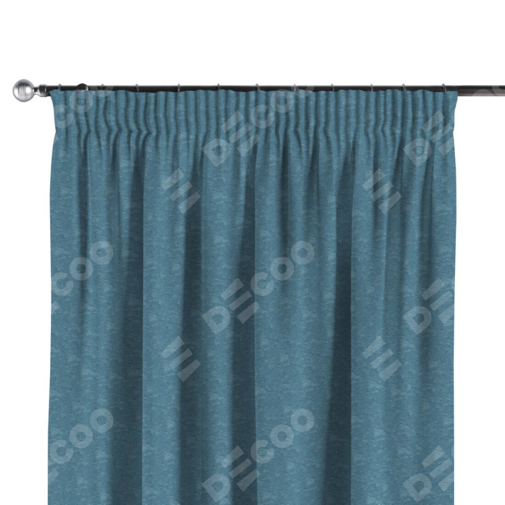 Комплект прямых штор, от производителя «Cortin», пошиты из ткани софт мрамор голубой, артикул ткани 93580. С изнаночной стороны в верхней части штор пристрачивается шторная лента с декоративными складками «Карандаш». Для создания элегантных складок прямые шторы шьются по стандарту с коэффициентом 1:2 (на 100 см. ширины проёма 200 см. ширины ткани).