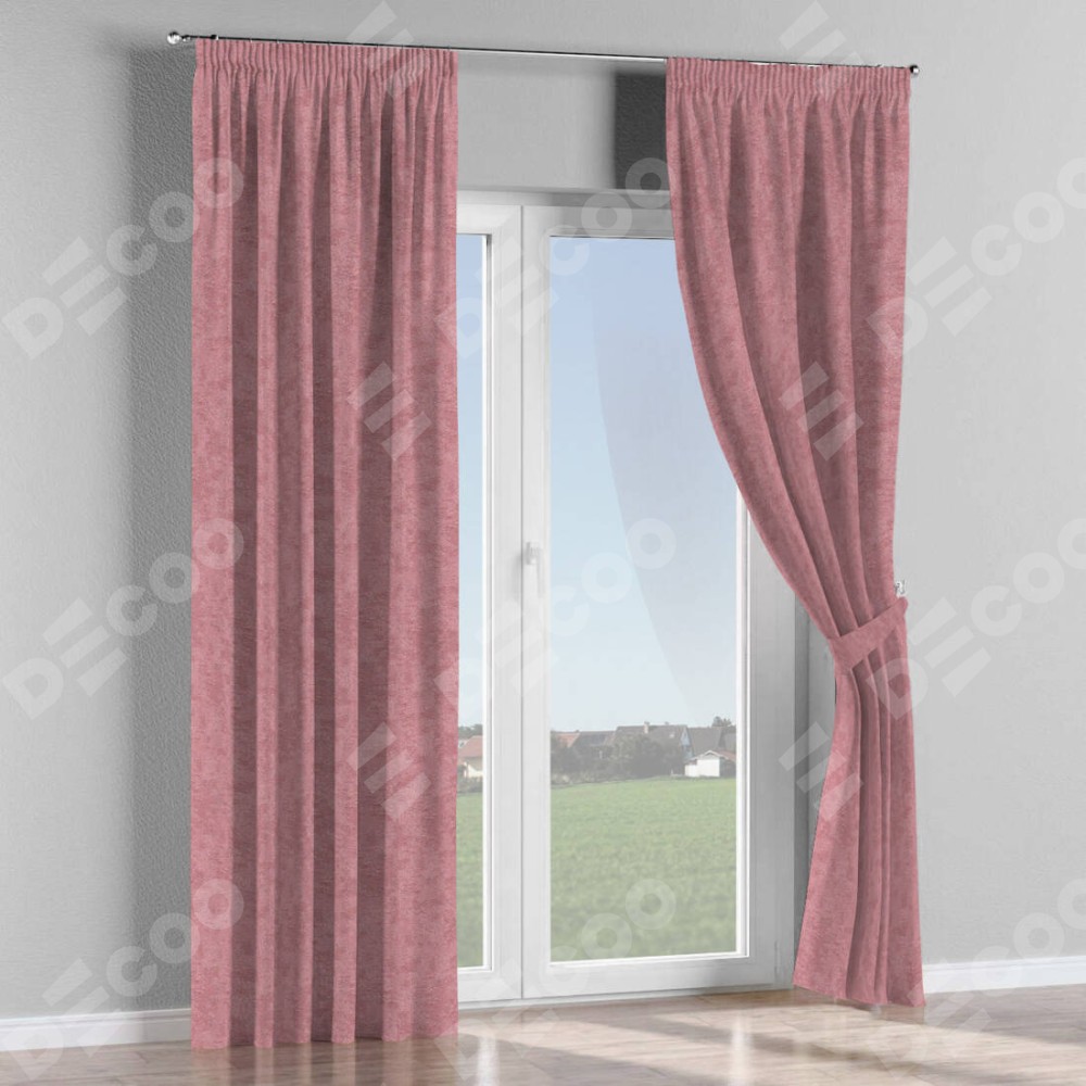 Комплект прямых штор, от производителя «Cortin», пошиты из ткани софт мрамор розовый, артикул ткани 93584. С изнаночной стороны в верхней части штор пристрачивается шторная лента с декоративными складками «Карандаш». Для создания элегантных складок прямые шторы шьются по стандарту с коэффициентом 1:2 (на 100 см. ширины проёма 200 см. ширины ткани).