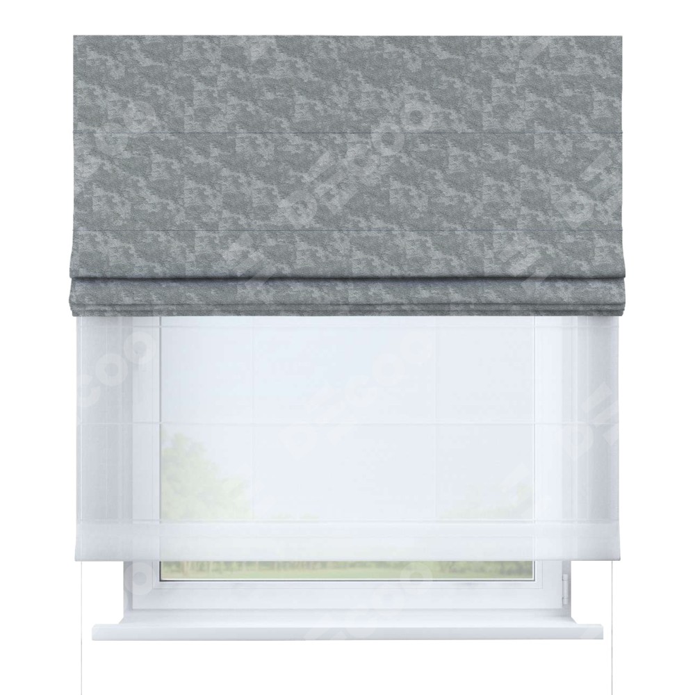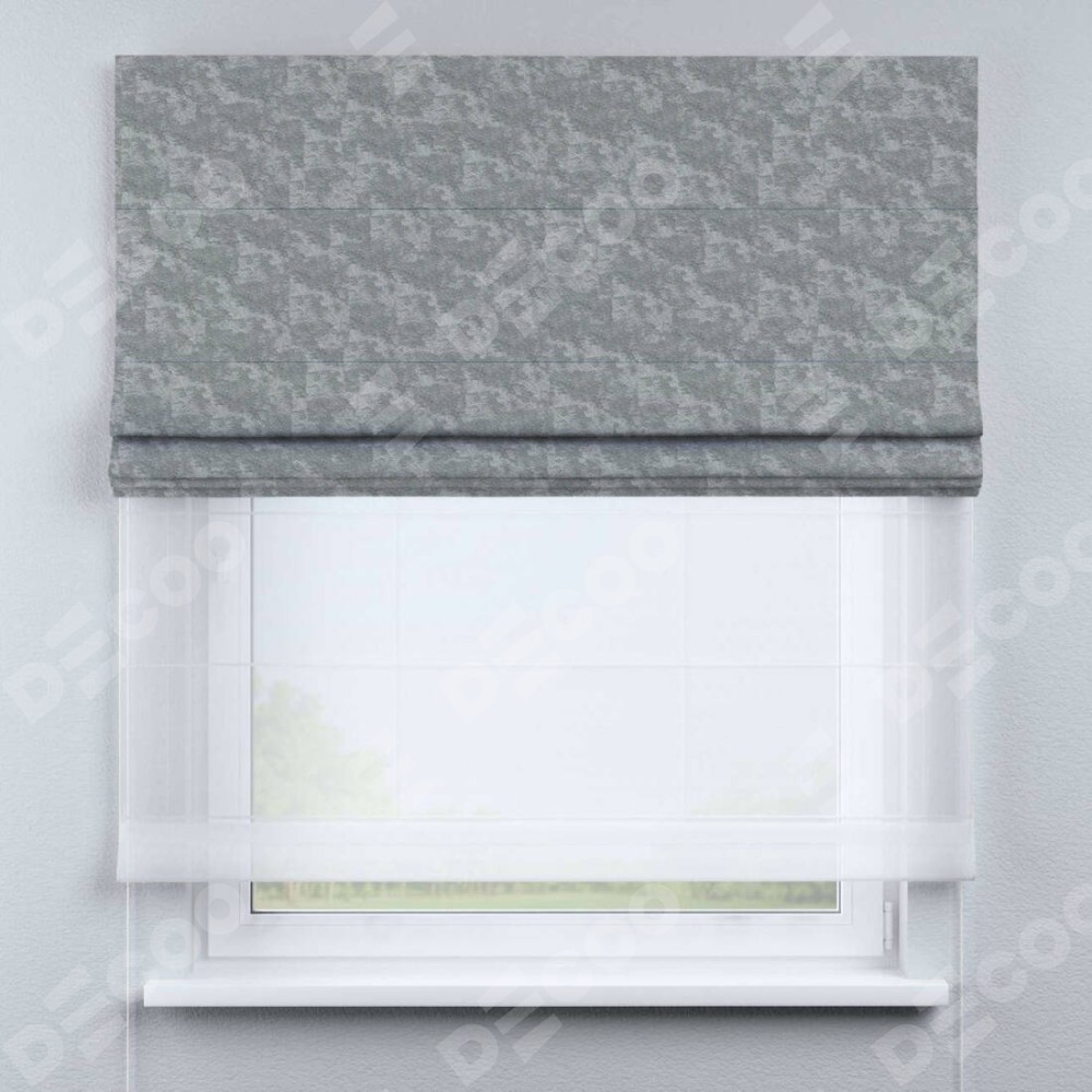 Двойная римская штора «День-ночь» от производителя Cortin предназначена для использования в проёмах. Эта штора уникальна тем, что состоит из двух полотен. На лицевой стороне находится софт мрамор серый (артикул: 93583), обеспечивающий эффективное затемнение. В комплект также входит вторая ткань — легкий белый тюль (артикул: V-01), который добавляет изящества и легкости оформлению окна. Кроме того, доступны и другие разновидности ткани тюль, выбор которых доступен по ссылке .