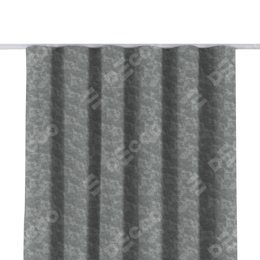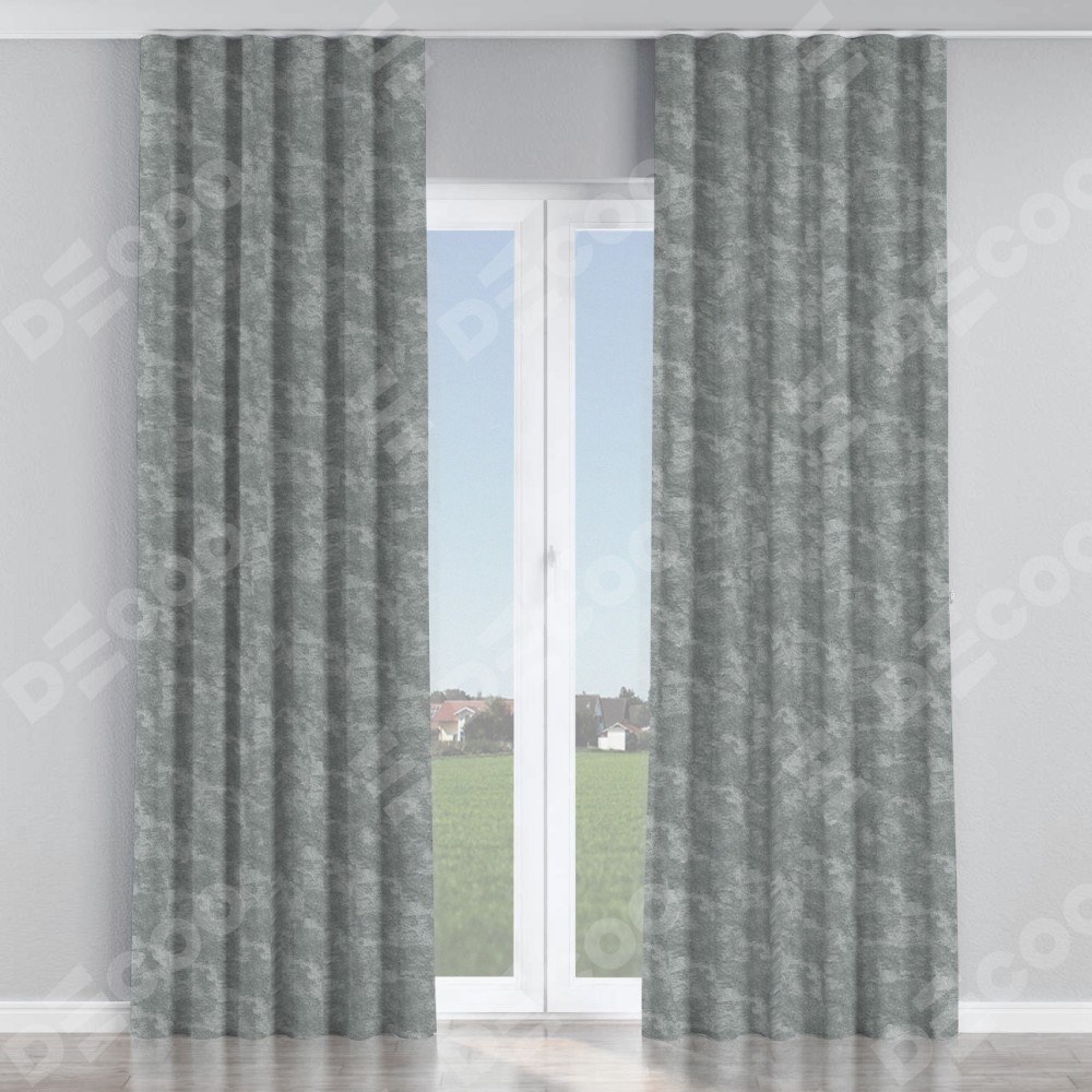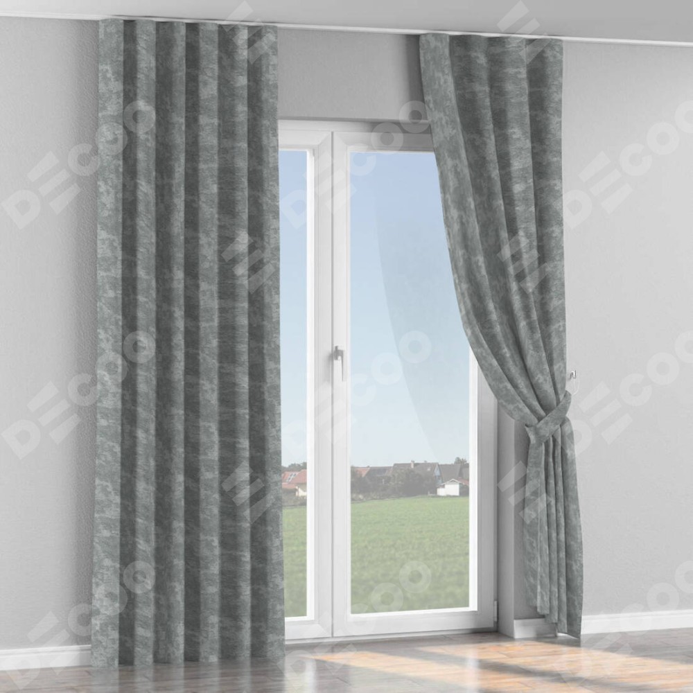 Комплект прямых штор, от производителя «Cortin», пошиты из ткани софт мрамор серый, артикул ткани 93583. С изнаночной стороны в верхней части штор пристрачивается шторная лента с декоративными складками «Волна». Для создания элегантных складок прямые шторы шьются по стандарту с коэффициентом 1:2 (на 100 см. ширины проёма 200 см. ширины ткани).