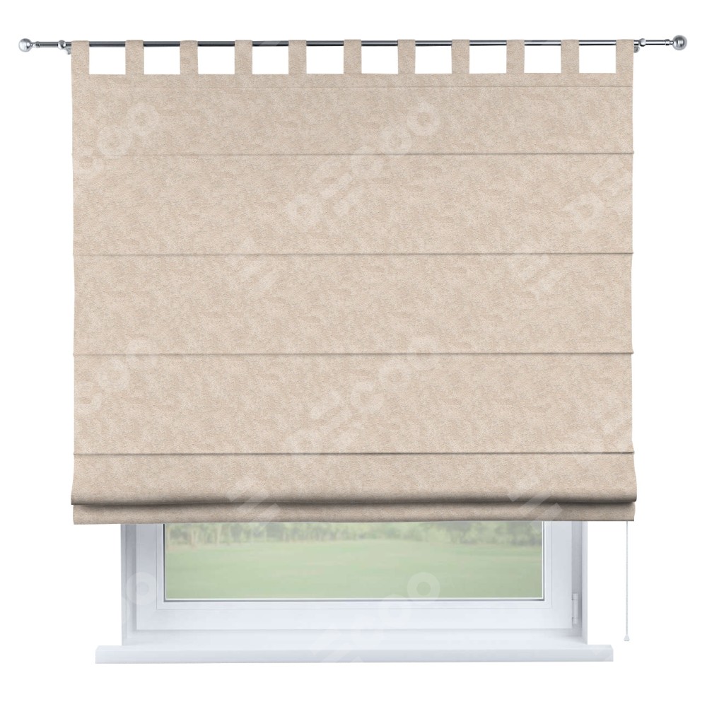 Римская штора производителя «Cortin», используется для проёма, пошита из ткани софт мрамор шампань, артикул ткани 93575. Данная модель пошита на петлях, комплектуется на выбор круглым карнизом и подходит для монтажа на стену. Римская штора на петлях имеет простую систему регулировки высоты, отличительным преимуществом данной модели является простой способ монтажа. Достаточно повесить ее на трубу и штора готова!
