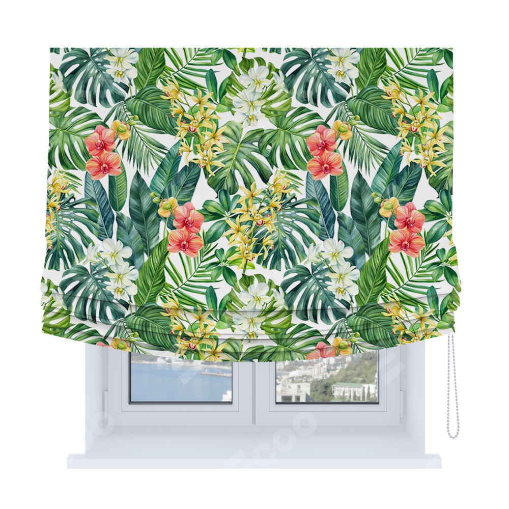 Римская штора Soft с мягкими складками, «Орхидеи в тропиках»