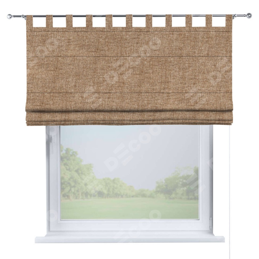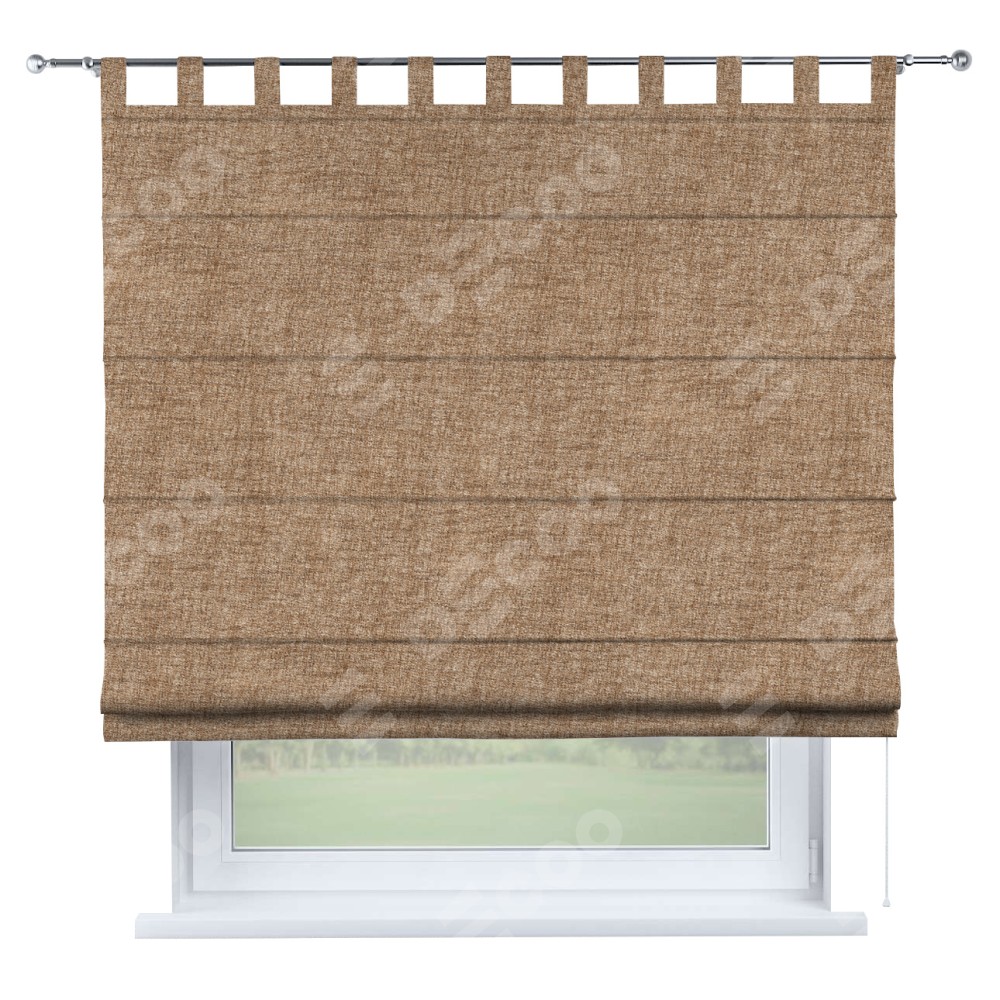 Римская штора производителя «Cortin», используется для проёма, пошита из ткани рогожка димаут светло-коричневый, артикул ткани 91017. Данная модель пошита на петлях, комплектуется на выбор круглым карнизом и подходит для монтажа на стену. Римская штора на петлях имеет простую систему регулировки высоты, отличительным преимуществом данной модели является простой способ монтажа. Достаточно повесить ее на трубу и штора готова!