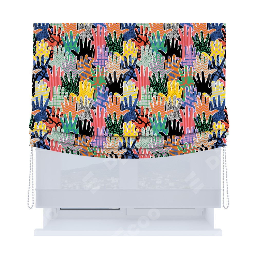 Римская штора «Кортин», день-ночь с мягкими складками, «Коллаж поп-арт»