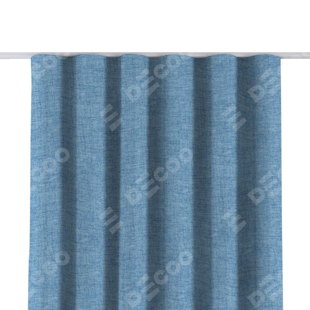 Комплект прямых штор, от производителя «Cortin», пошиты из ткани рогожка димаут голубой, артикул ткани 91025. С изнаночной стороны в верхней части штор пристрачивается шторная лента с декоративными складками «Волна». Для создания элегантных складок прямые шторы шьются по стандарту с коэффициентом 1:2 (на 100 см. ширины проёма 200 см. ширины ткани).