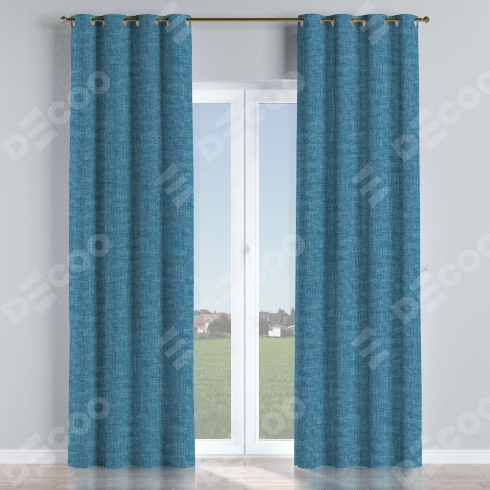 Комплект прямых штор, от производителя «Cortin», пошиты из ткани рогожка димаут лазурно-синий, артикул ткани 91024. Данная модель пошита на люверсах, комплектуется на выбор круглым карнизом и подходит для монтажа на стену или потолок. Прямые шторы на люверсах шьются по стандарту с коэффициентом 1/2 (на 100 см. ширины проёма 200 см. ширины ткани), отличительным преимуществом данной модели является простой способ монтажа. Достаточно повесить ее на трубу и штора готова!