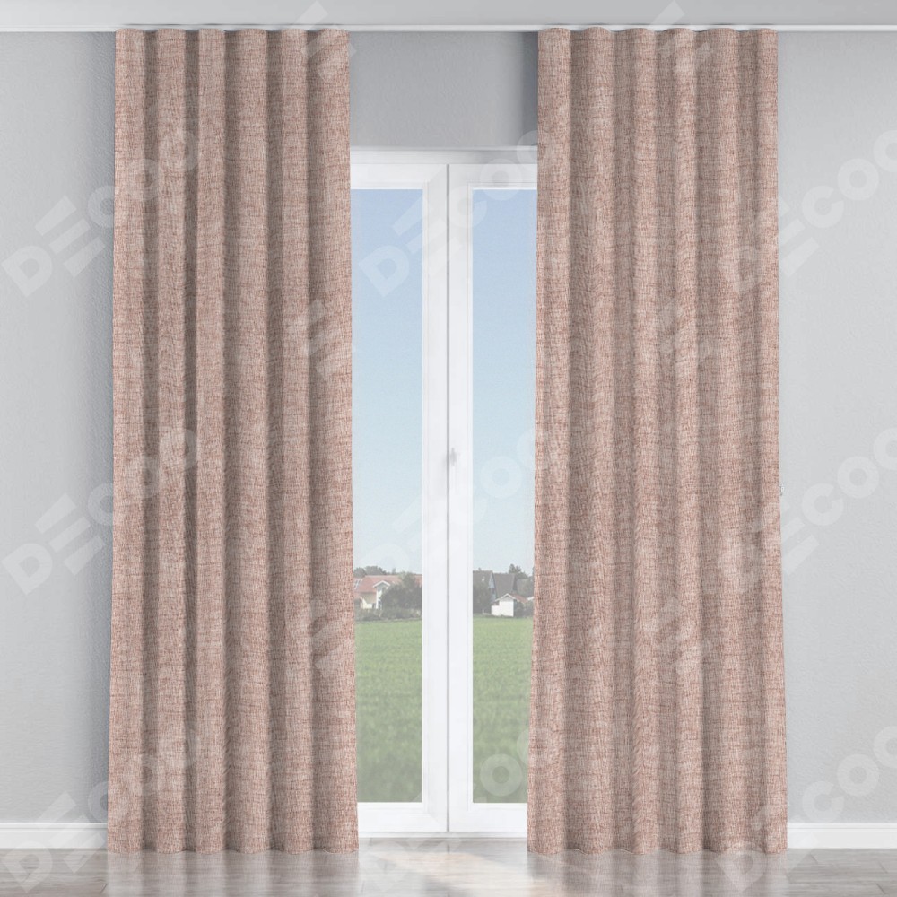 Комплект прямых штор, от производителя «Cortin», пошиты из ткани рогожка димаут пыльный розовый, артикул ткани 91019. С изнаночной стороны в верхней части штор пристрачивается шторная лента с декоративными складками «Волна». Для создания элегантных складок прямые шторы шьются по стандарту с коэффициентом 1:2 (на 100 см. ширины проёма 200 см. ширины ткани).