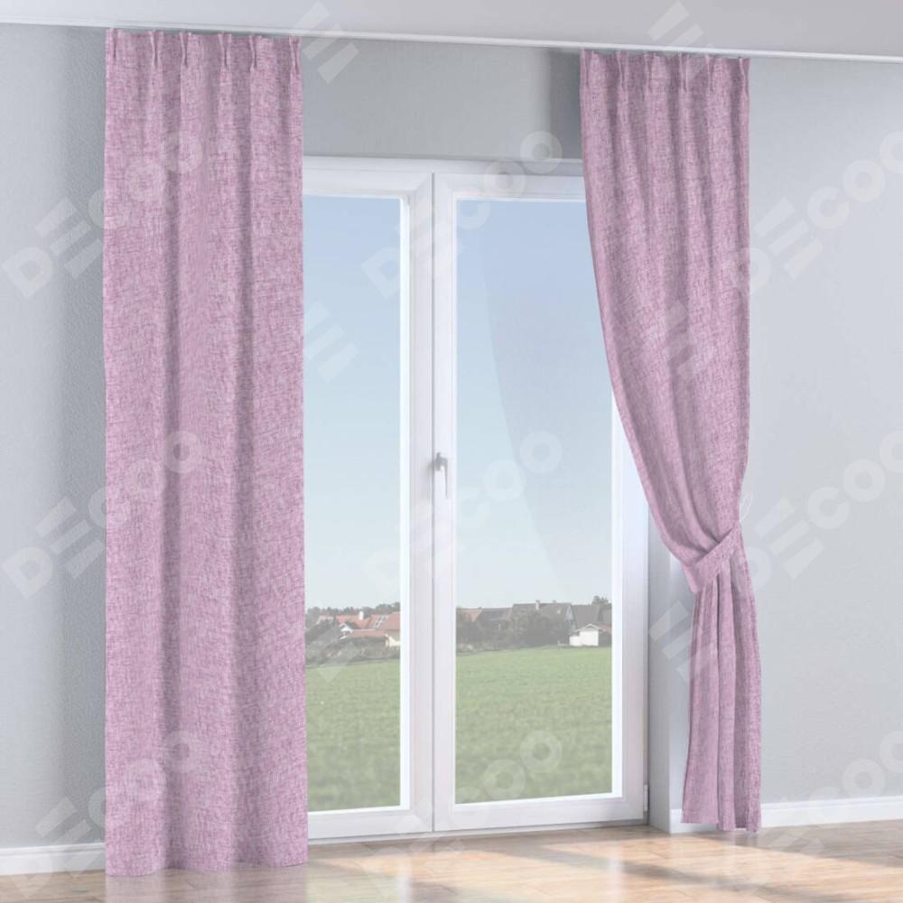 Комплект прямых штор, от производителя «Cortin», пошиты из ткани рогожка димаут розовый, артикул ткани 91031. С изнаночной стороны в верхней части штор пристрачивается шторная лента с декоративными складками «Кустик». Для создания элегантных складок прямые шторы шьются по стандарту с коэффициентом 1:2 (на 100 см. ширины проёма 200 см. ширины ткани).
