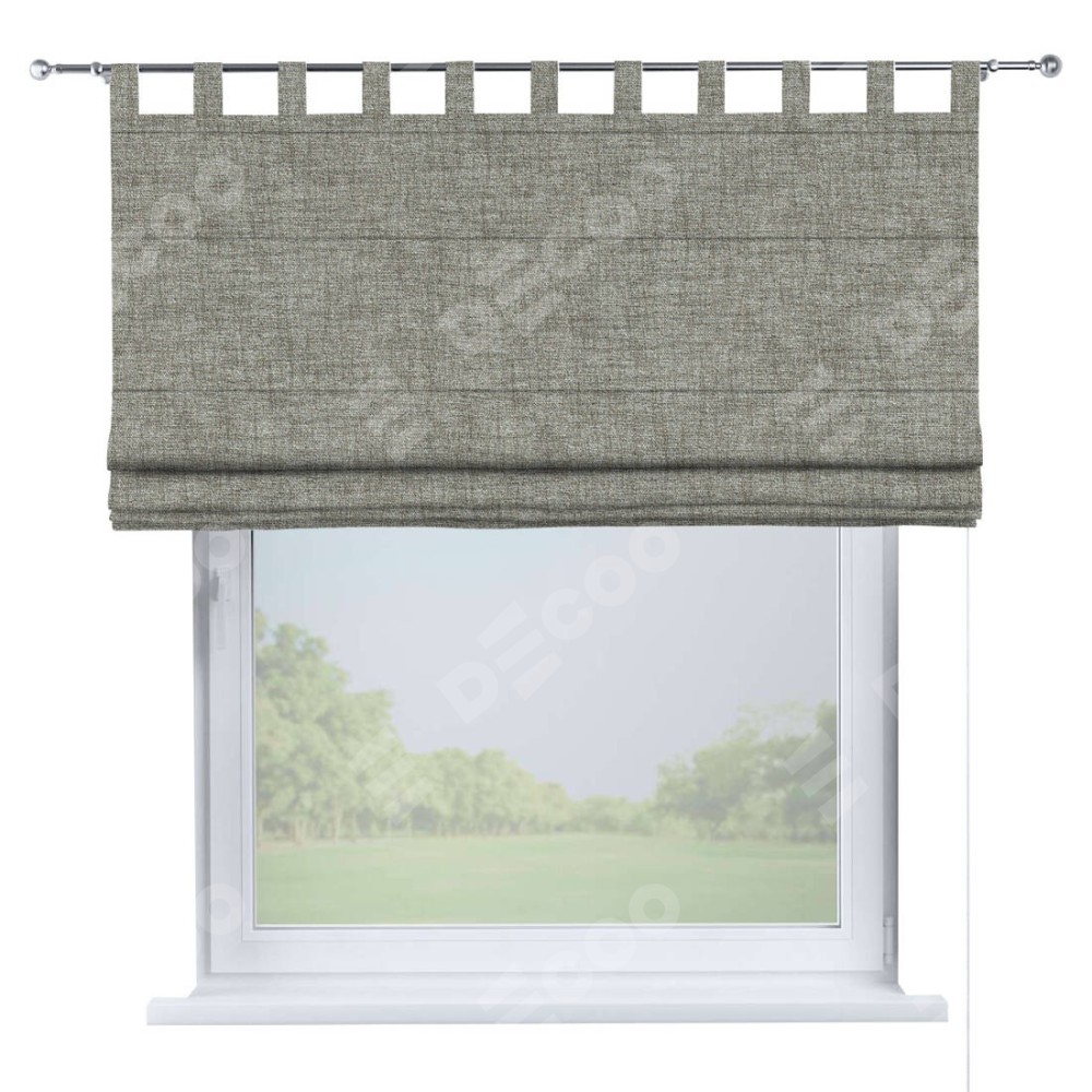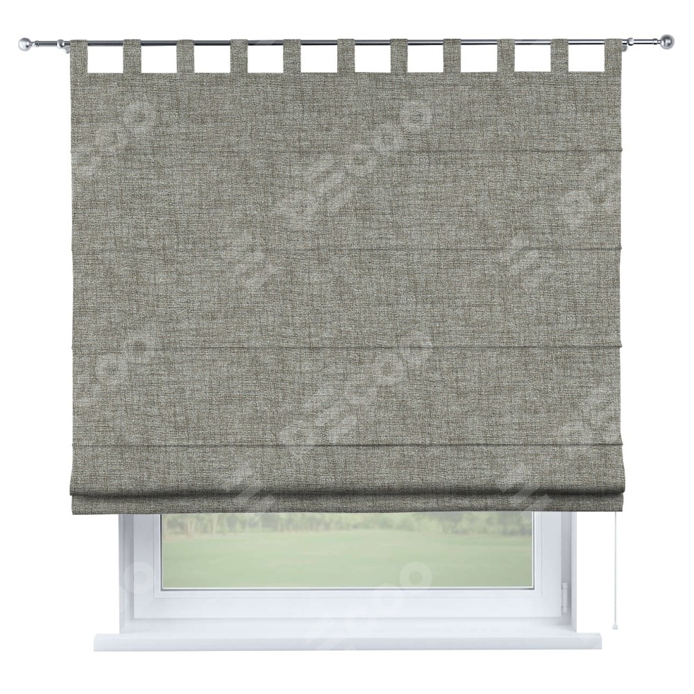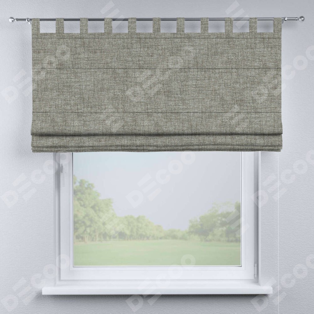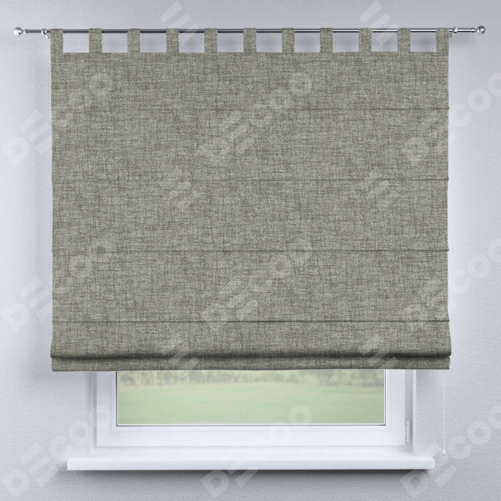 Римская штора производителя «Cortin», используется для проёма, пошита из ткани рогожка димаут серый дуб, артикул ткани 91028. Данная модель пошита на петлях, комплектуется на выбор круглым карнизом и подходит для монтажа на стену. Римская штора на петлях имеет простую систему регулировки высоты, отличительным преимуществом данной модели является простой способ монтажа. Достаточно повесить ее на трубу и штора готова!