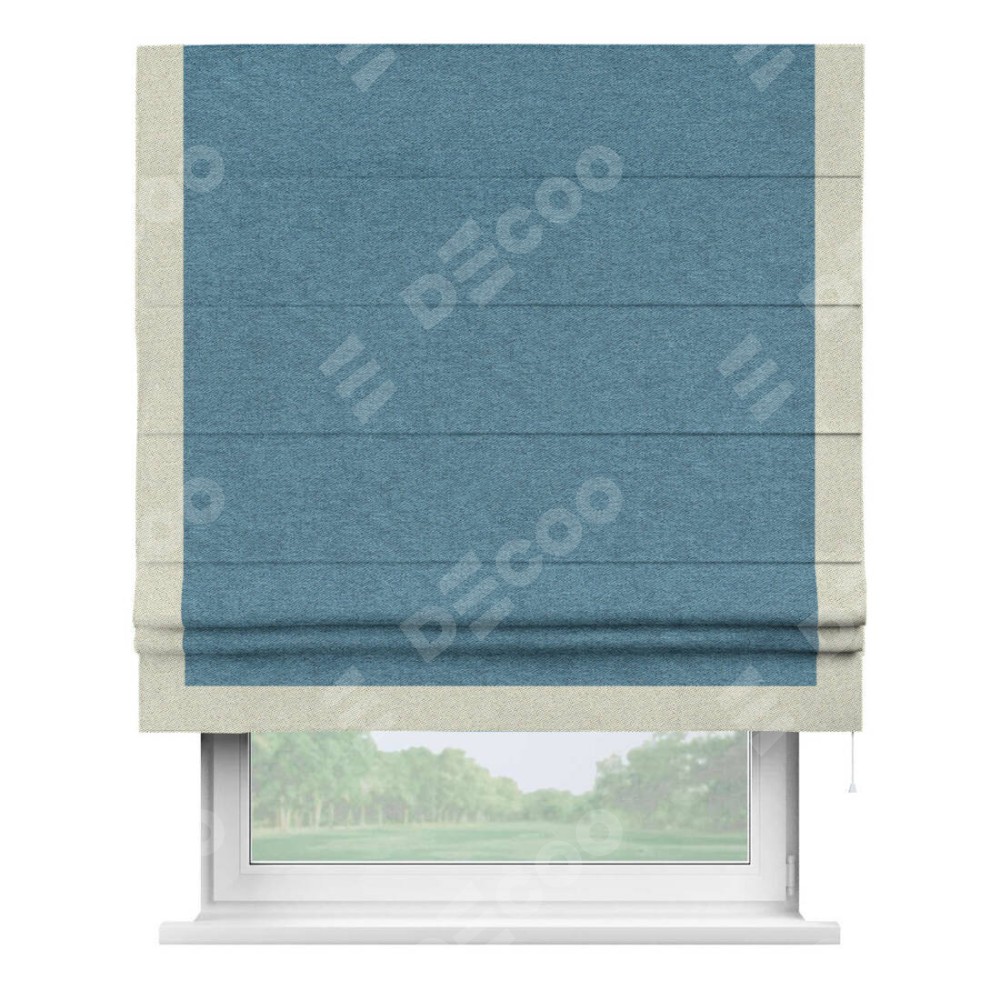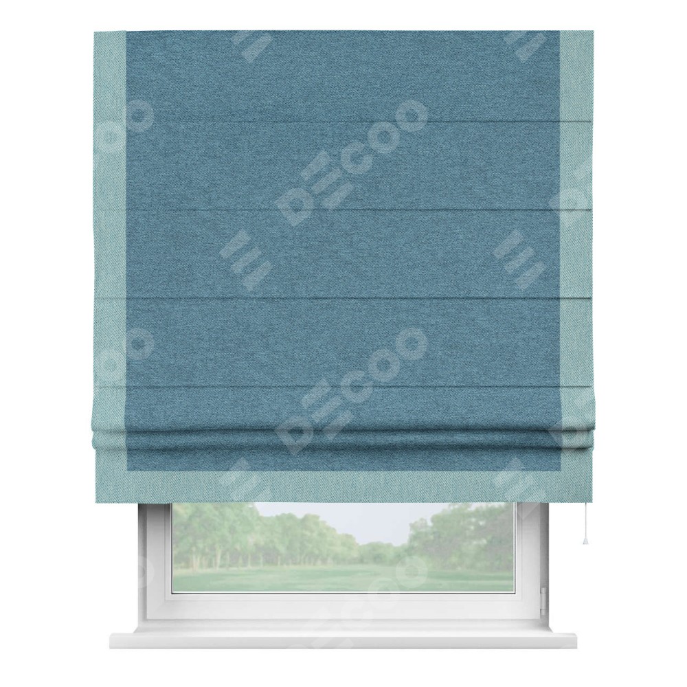 Римская штора с отделкой кантом «Виктория», пошита из ткани твид блэкаут светло-синий, артикул: 90935. представляет собой элегантное решение для оконного оформления. Кант по бокам и снизу шторы добавляет изысканности и аккуратности внешнему виду, подчеркивая линии и форму шторы. Этот элемент декора не только украшает, но и выполняет практическую функцию, защищая края ткани от износа. Кант может быть выполнен в контрастном или гармонирующем цвете, что позволяет добиться различных стилевых эффектов и легко вписать штору в интерьер комнаты.