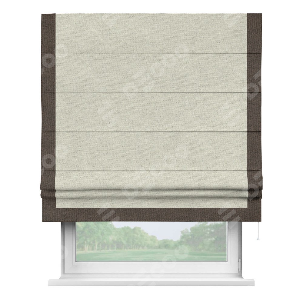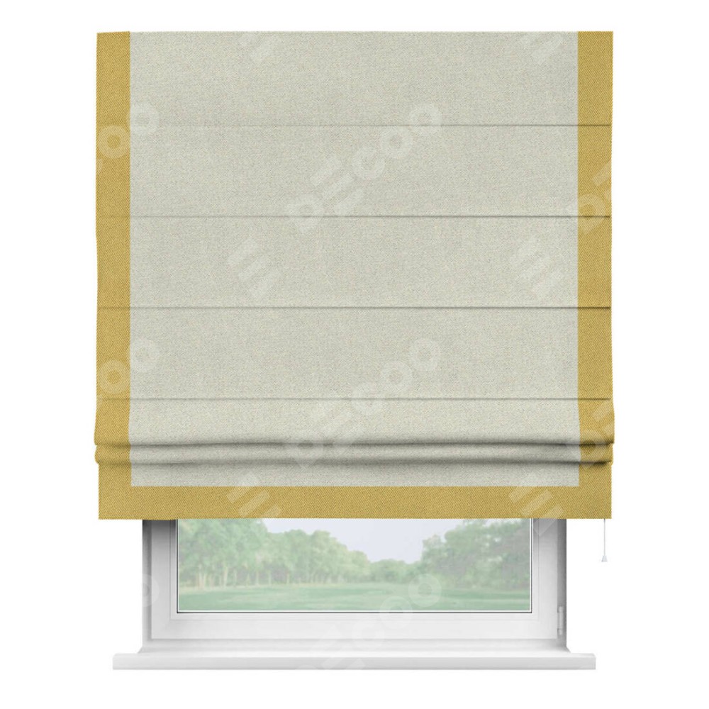Римская штора с отделкой кантом «Виктория», пошита из ткани твид блэкаут шампань, артикул: 90929. представляет собой элегантное решение для оконного оформления. Кант по бокам и снизу шторы добавляет изысканности и аккуратности внешнему виду, подчеркивая линии и форму шторы. Этот элемент декора не только украшает, но и выполняет практическую функцию, защищая края ткани от износа. Кант может быть выполнен в контрастном или гармонирующем цвете, что позволяет добиться различных стилевых эффектов и легко вписать штору в интерьер комнаты.