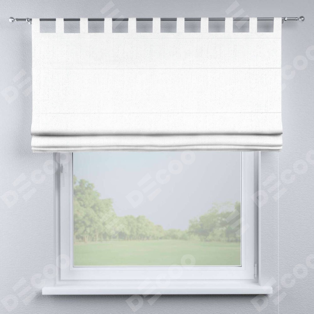 Римская штора производителя «Cortin», используется для проёма, пошита из ткани лён белоснежный, артикул ткани 95632. Данная модель пошита на петлях, комплектуется на выбор круглым карнизом и подходит для монтажа на стену. Римская штора на петлях имеет простую систему регулировки высоты, отличительным преимуществом данной модели является простой способ монтажа. Достаточно повесить ее на трубу и штора готова!