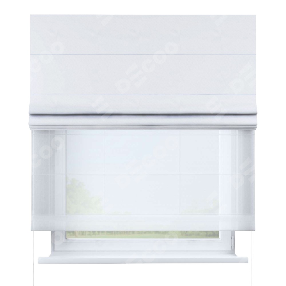 Двойная римская штора «День-ночь» от производителя Cortin предназначена для использования в проёмах. Эта штора уникальна тем, что состоит из двух полотен. На лицевой стороне находится вельвет белоснежный (артикул: 92698), обеспечивающий эффективное затемнение. В комплект также входит вторая ткань — легкий белый тюль (артикул: V-01), который добавляет изящества и легкости оформлению окна. Кроме того, доступны и другие разновидности ткани тюль, выбор которых доступен по  ссылке .