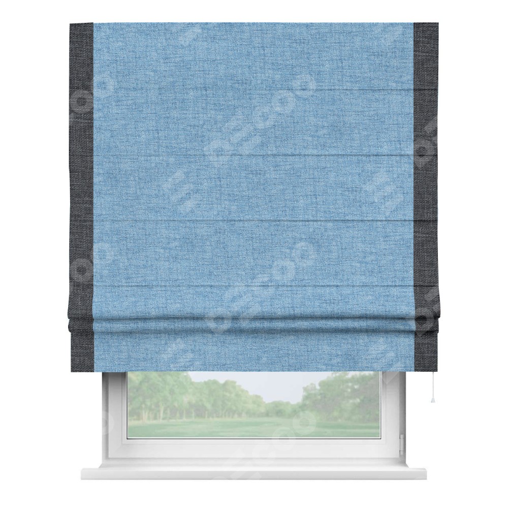 Римская штора «Кортин» для проёма, рогожка димаут голубой, с кантом Стрим Дуо