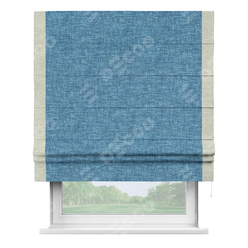Римская штора «Кортин» для проёма, рогожка димаут джинс, с кантом Стрим Дуо
