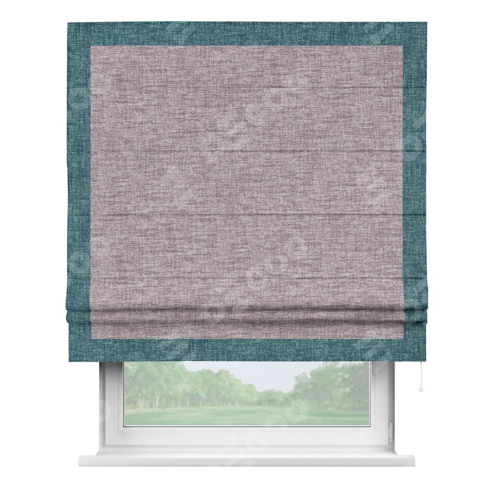Римская штора «Кортин» для проёма, рогожка димаут розовый кварц, с кантом Чесс
