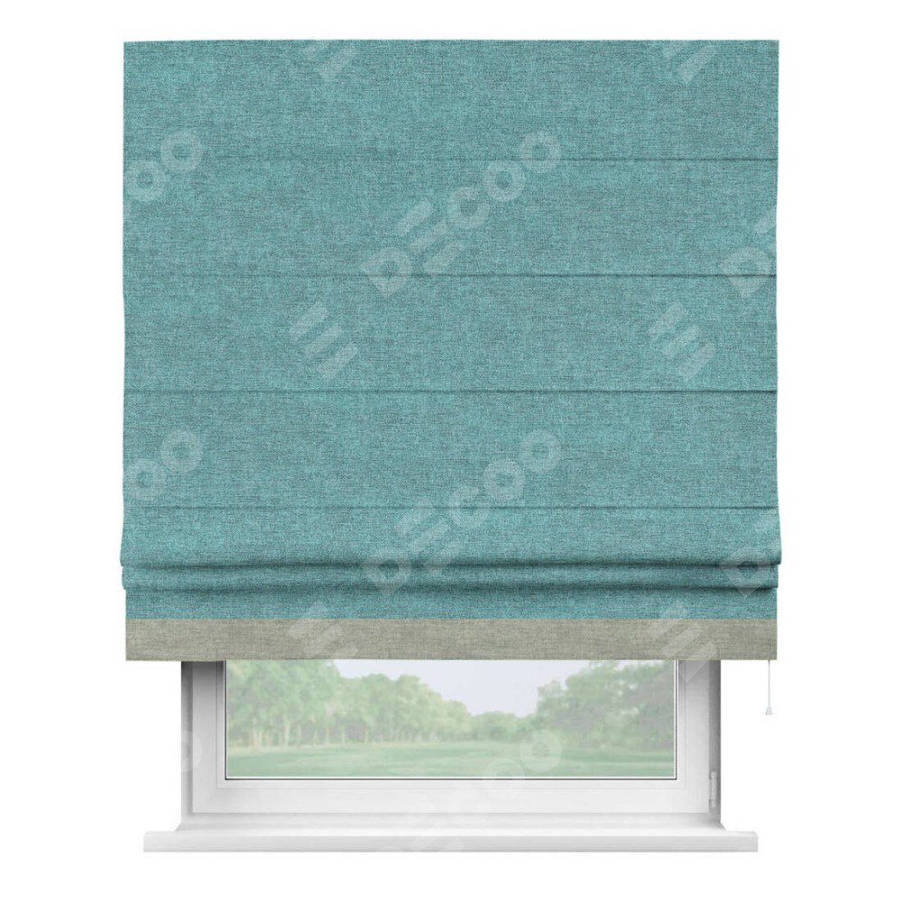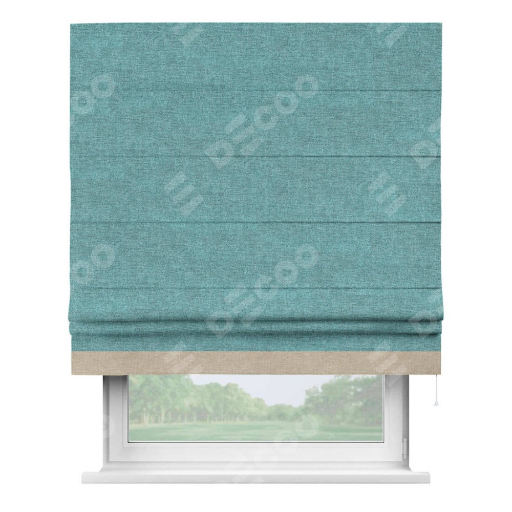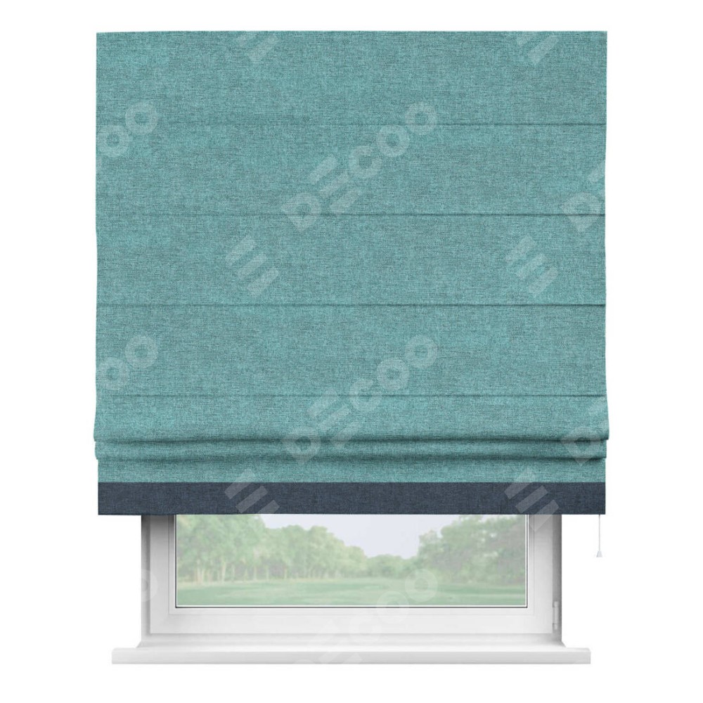 Римская штора «Кортин» с кантом Джестер, для проема, ткань лён кашемир бирюзовый