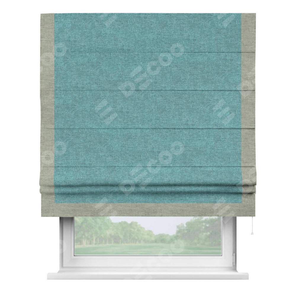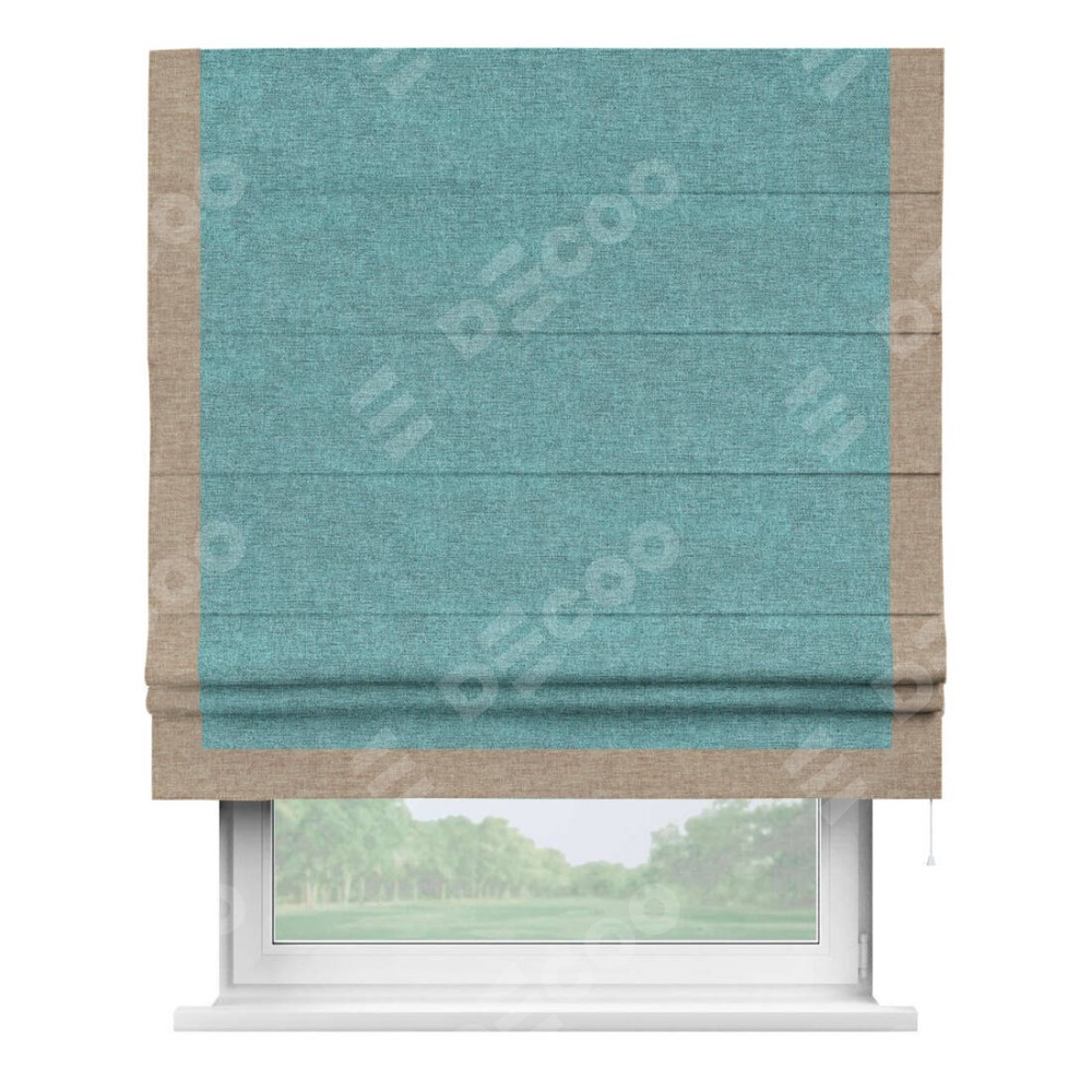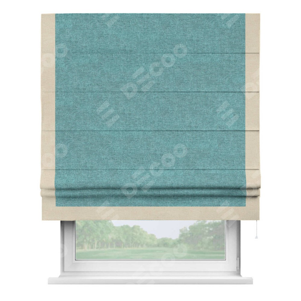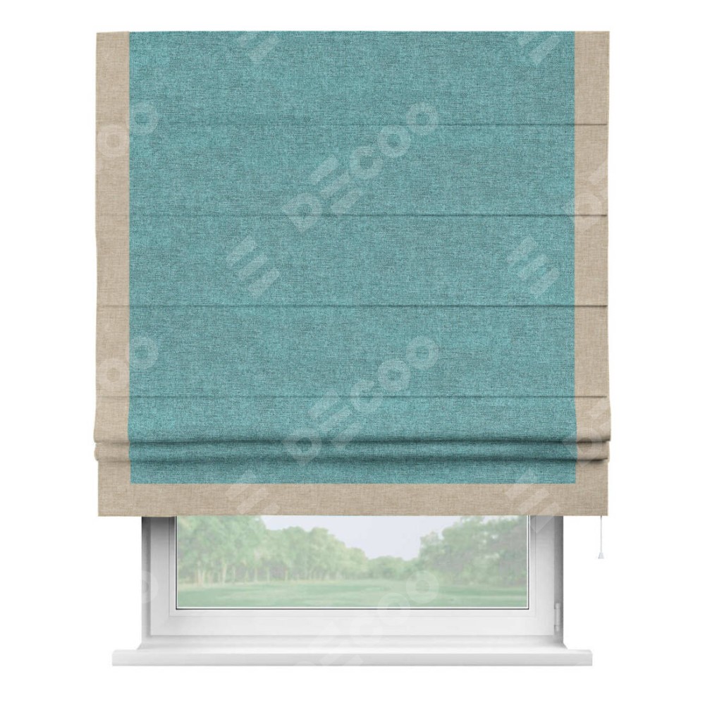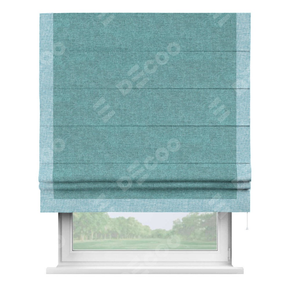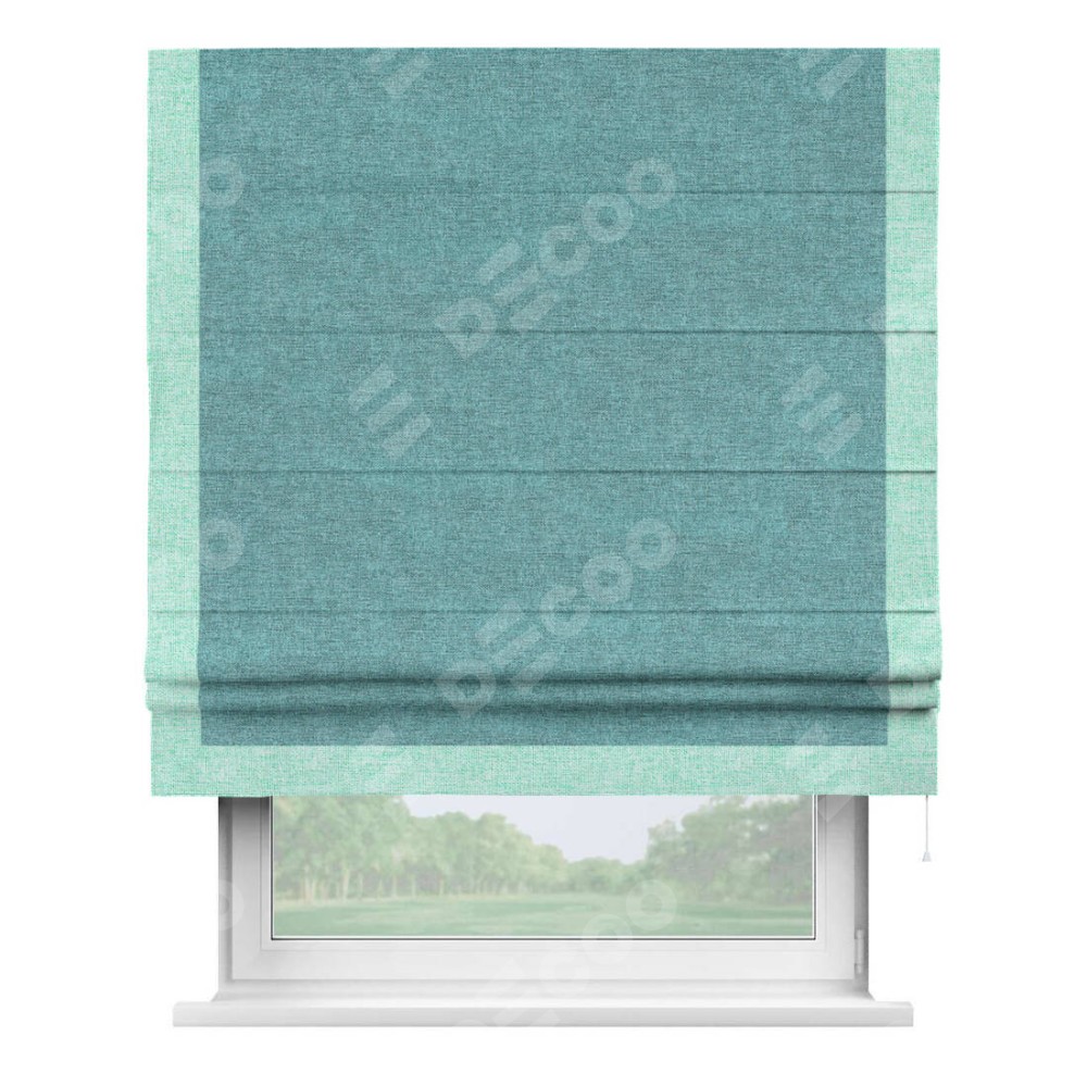 Римская штора с отделкой кантом «Виктория», пошита из ткани лён кашемир бирюзовый, артикул: 17214. представляет собой элегантное решение для оконного оформления. Кант по бокам и снизу шторы добавляет изысканности и аккуратности внешнему виду, подчеркивая линии и форму шторы. Этот элемент декора не только украшает, но и выполняет практическую функцию, защищая края ткани от износа. Кант может быть выполнен в контрастном или гармонирующем цвете, что позволяет добиться различных стилевых эффектов и легко вписать штору в интерьер комнаты.