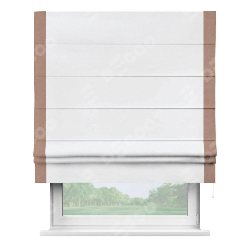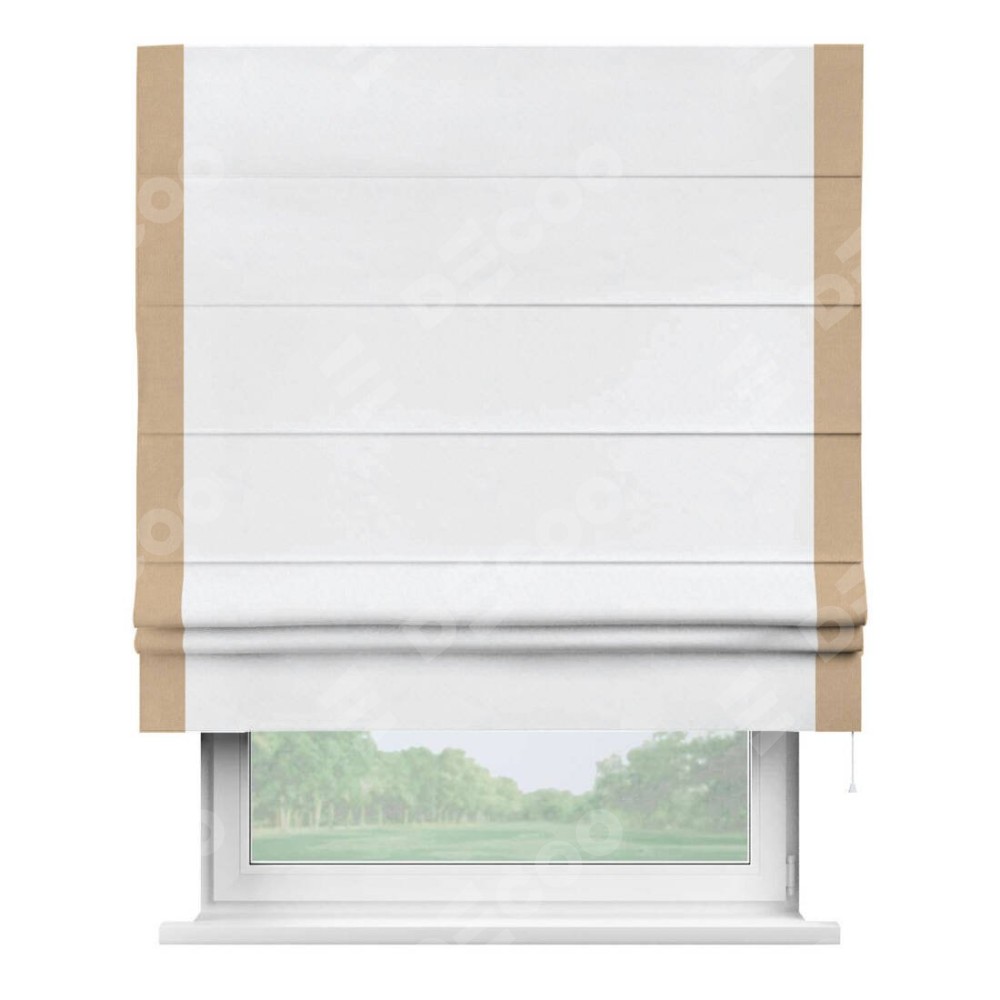 Римская штора «Кортин» для проёма, вельвет белоснежный с кантом Стрим Дуо