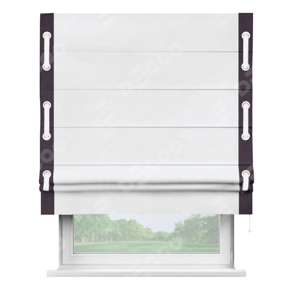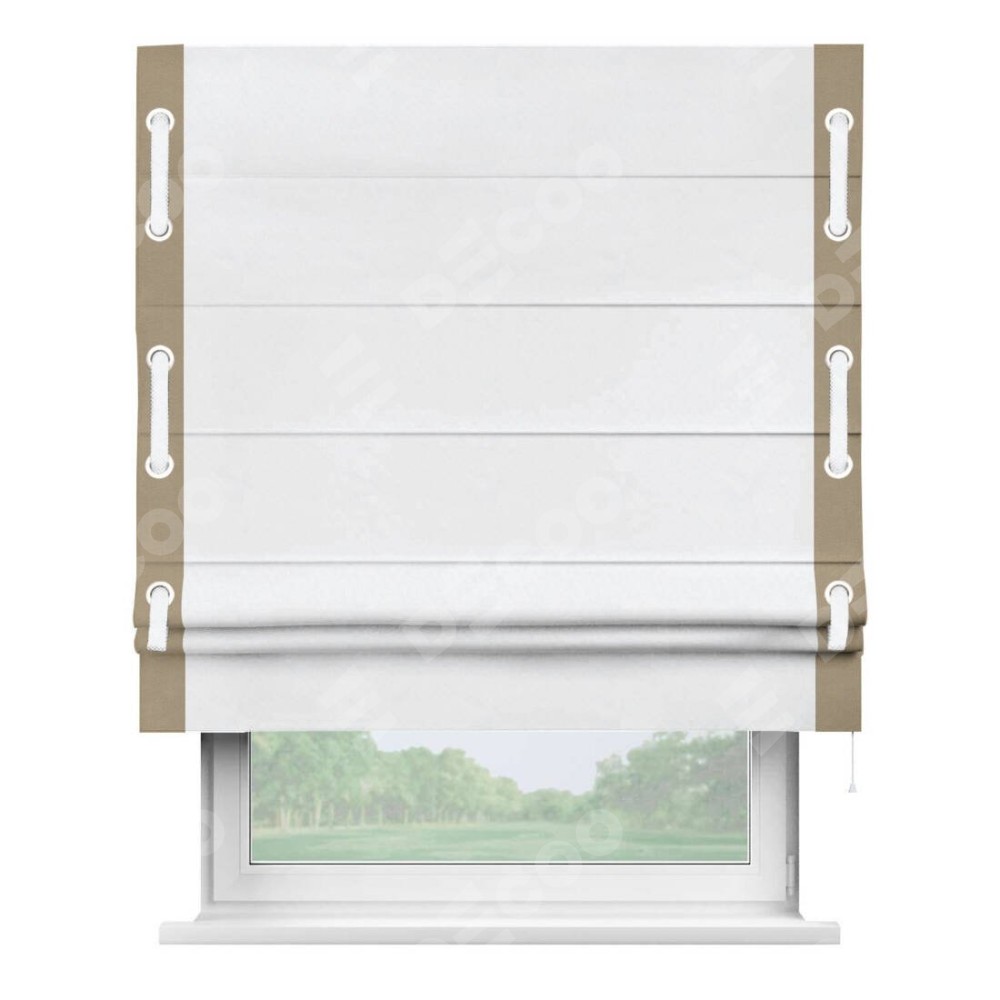 Римская штора «Кортин» для проёма, вельвет белоснежный с кантом Стрим Дуо (люверсы с пояском)