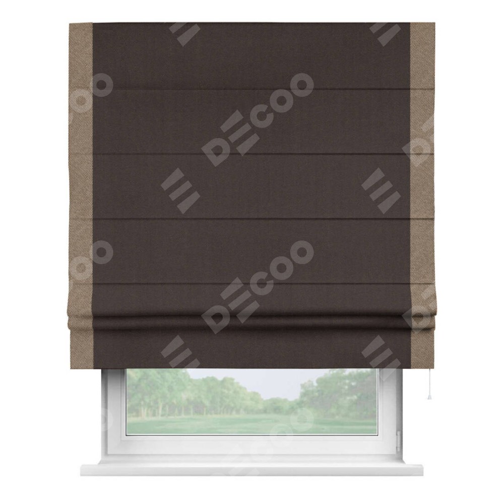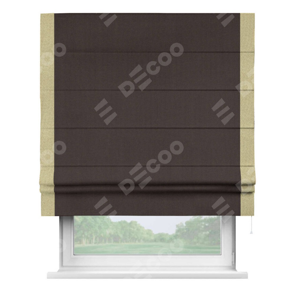 Римская штора «Кортин» для проема, лён димаут венге с кантом Стрим Дуо