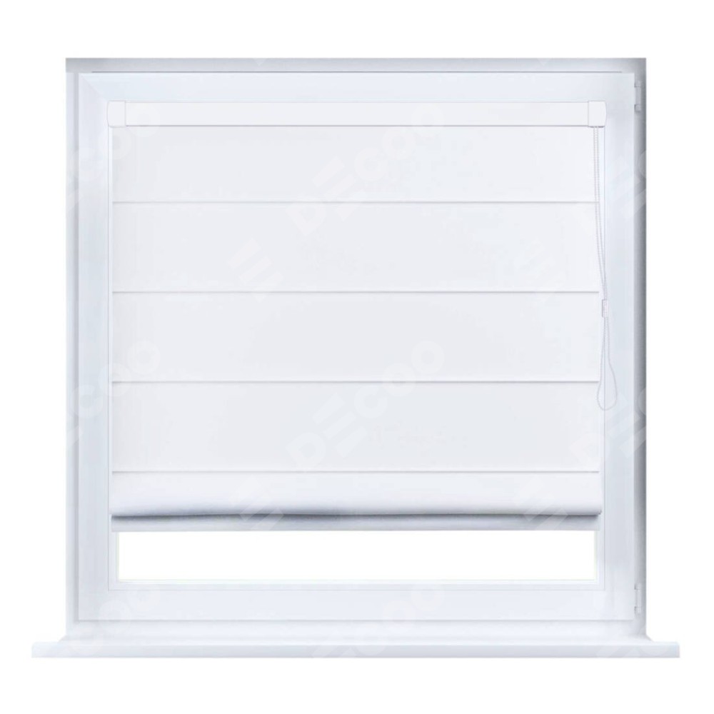 Римская штора производителя «Cortin», устанавливается на створку окна, пошита из ткани вайтаут однотонная белая, артикул 93935. Штора шьётся по индивидуальным размерам, для данного типа римской шторы возможная ширина от 35 до 150 см., высота до 250 см.