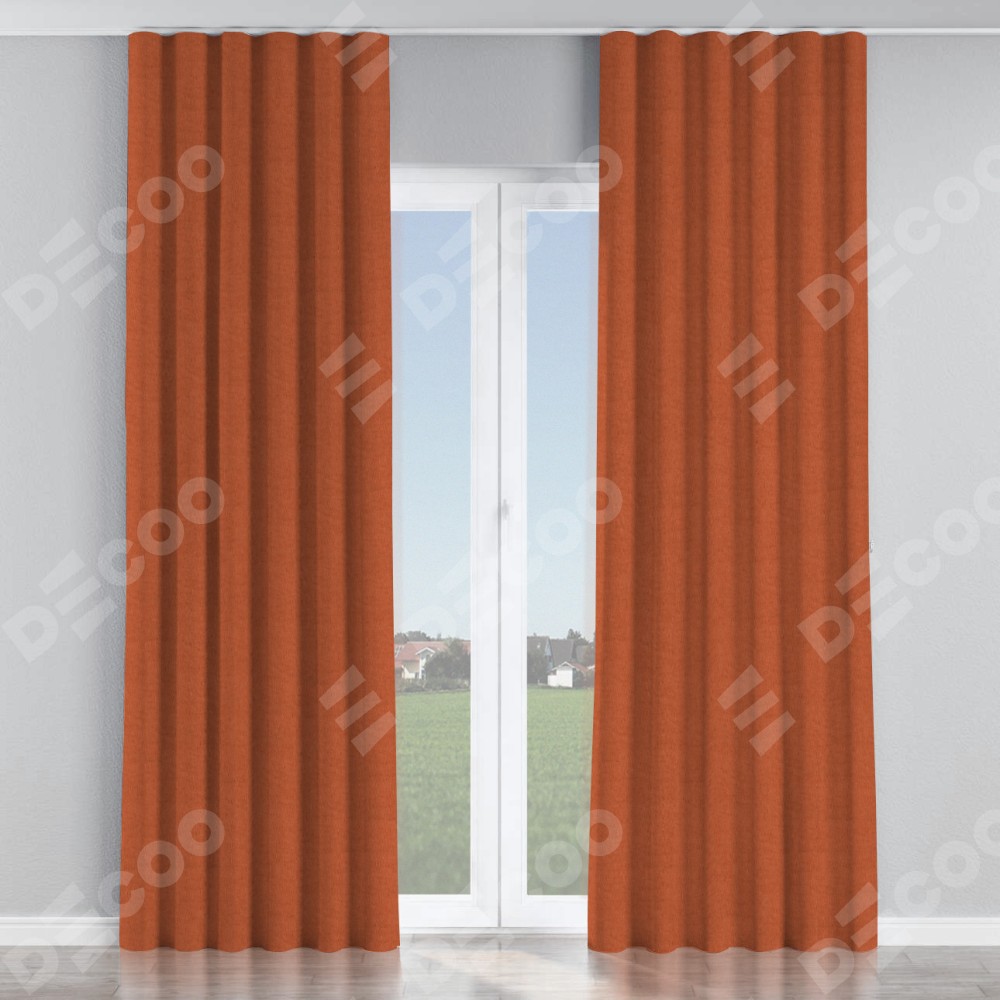 Комплект прямых штор, от производителя «Cortin», пошиты из ткани канвас терракотовый, артикул ткани v-107. С изнаночной стороны в верхней части штор пристрачивается шторная лента с декоративными складками «Волна». Для создания элегантных складок рекомендуемый коэффициент 1:2 (на 100 см. ширины проёма 200 см. ширины ткани). Важно! Ширина штор указана без учёта коэффициента сборки!