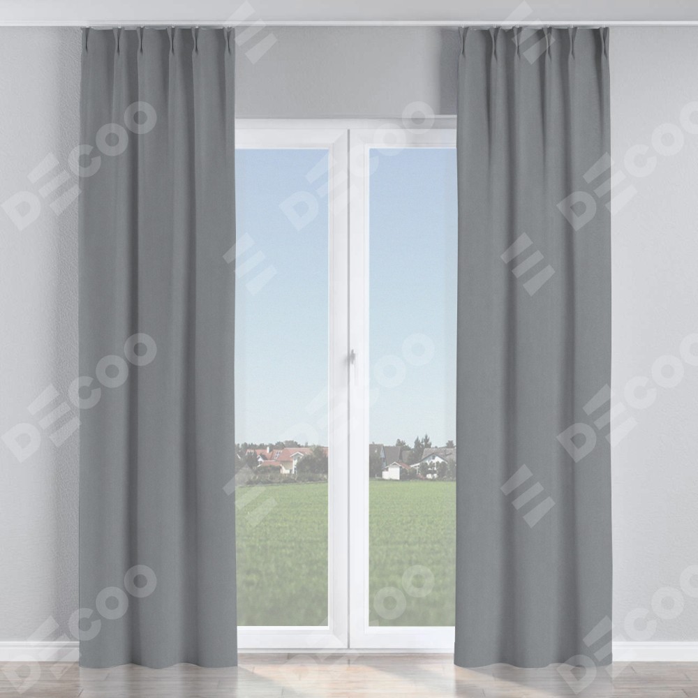 Комплект прямых штор, от производителя «Cortin», пошиты из ткани однотонный блэкаут серый, артикул ткани 146436. С изнаночной стороны в верхней части штор пристрачивается шторная лента с декоративными складками «Кустик». Для создания элегантных складок рекомендуемый коэффициент 1:2 (на 100 см. ширины проёма 200 см. ширины ткани). Важно! Ширина штор указана без учёта коэффициента сборки!