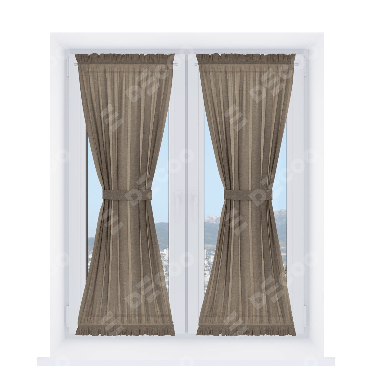 Штора «Песочные часы» производителя «Cortin», используется для створок окон и дверей, пошита из ткани лён светло-коричневый, артикул ткани 53434.