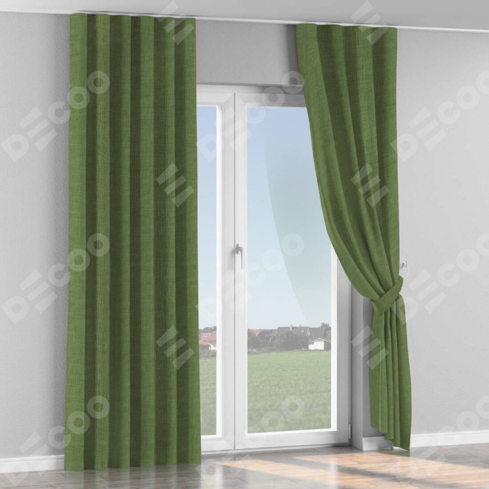 Комплект прямых штор, от производителя «Cortin», пошиты из ткани лён зелёный, артикул ткани 131547. С изнаночной стороны в верхней части штор пристрачивается шторная лента с декоративными складками «Волна». Для создания элегантных складок рекомендуемый коэффициент 1:2 (на 100 см. ширины проёма 200 см. ширины ткани). Важно! Ширина штор указана без учёта коэффициента сборки!
