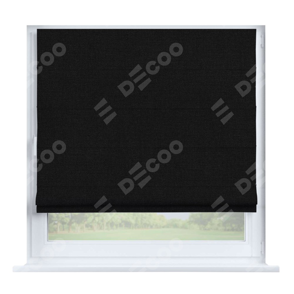 Римская штора производителя «Cortin», устанавливается на створку окна, пошита из ткани лён черный, артикул 140815. Штора шьётся по индивидуальным размерам, для данного типа римской шторы возможная ширина от 35 до 150 см., высота до 250 см.