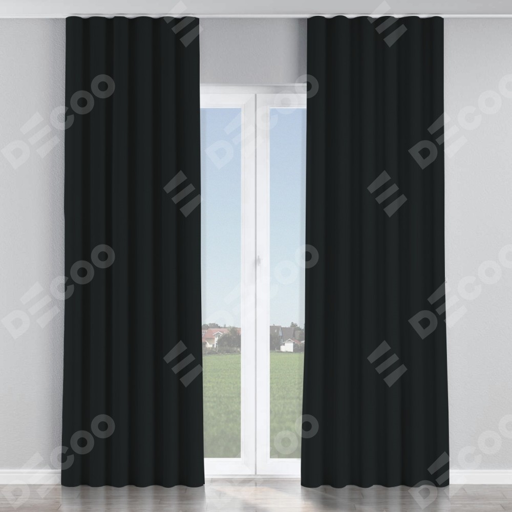Комплект прямых штор, от производителя «Cortin», пошиты из ткани блэкаут однотонный черный, артикул ткани 37. С изнаночной стороны в верхней части штор пристрачивается шторная лента с декоративными складками «Волна». Для создания элегантных складок прямые шторы шьются по стандарту с коэффициентом 1:2 (на 100 см. ширины проёма 200 см. ширины ткани).