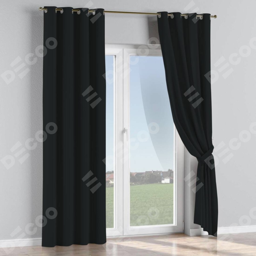 Комплект прямых штор, от производителя «Cortin», пошиты из ткани блэкаут однотонный черный, артикул ткани 37. Данная модель пошита на люверсах, комплектуется на выбор круглым карнизом и подходит для монтажа на стену или потолок. Прямые шторы на люверсах шьются по стандарту с коэффициентом 1/2 (на 100 см. ширины проёма 200 см. ширины ткани), отличительным преимуществом данной модели является простой способ монтажа. Достаточно повесить ее на трубу и штора готова!
