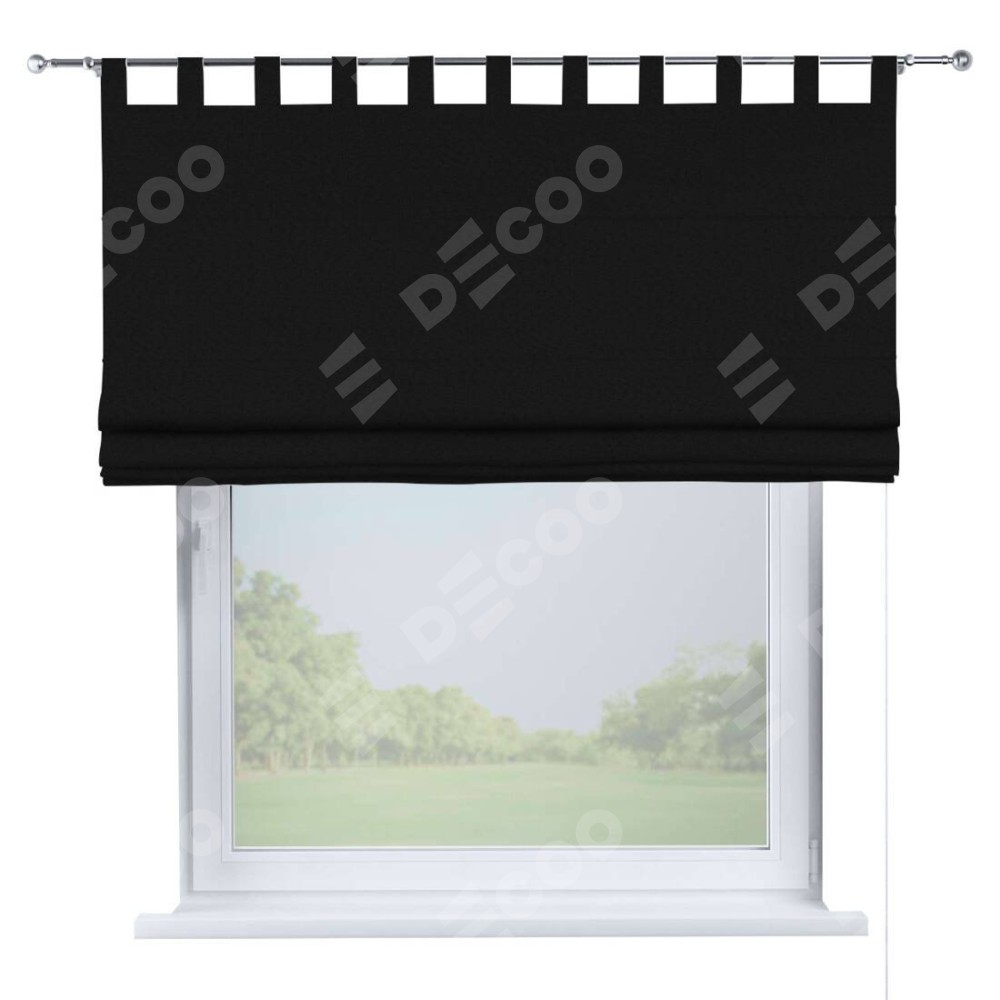 Римская штора производителя «Cortin», используется для проёма, пошита из ткани лён рустик черный, артикул ткани 145313. Данная модель пошита на петлях, комплектуется на выбор круглым карнизом и подходит для монтажа на стену. Римская штора на петлях имеет простую систему регулировки высоты, отличительным преимуществом данной модели является простой способ монтажа. Достаточно повесить ее на трубу и штора готова!