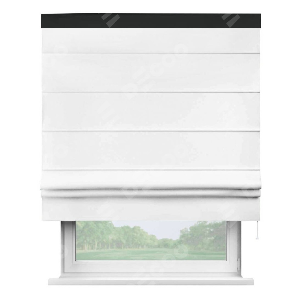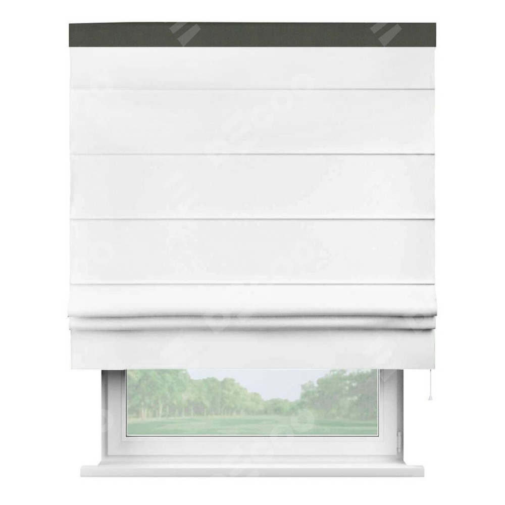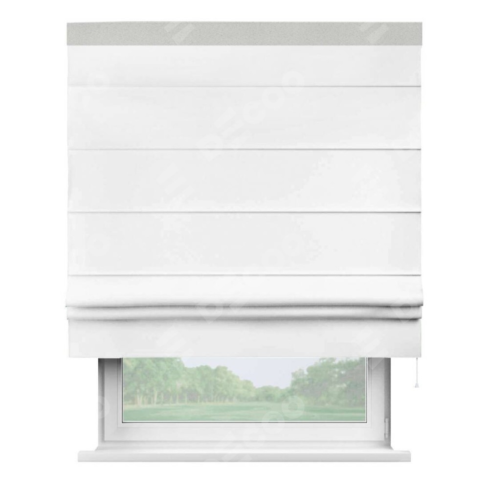 Классическая римская штора производителя «Cortin», пошита из ткани вайтаут однотонная белая, артикул: 93935. Имеет универсальный механизм и подходит для монтажа: на потолок, на стену и в нишу.