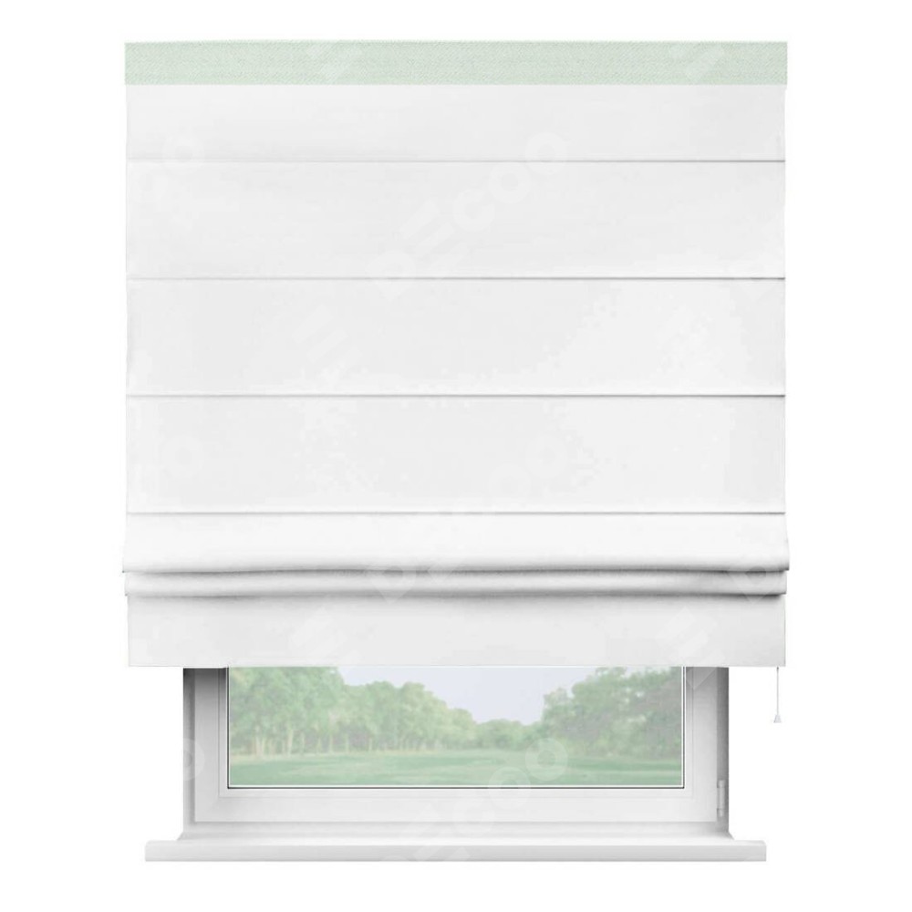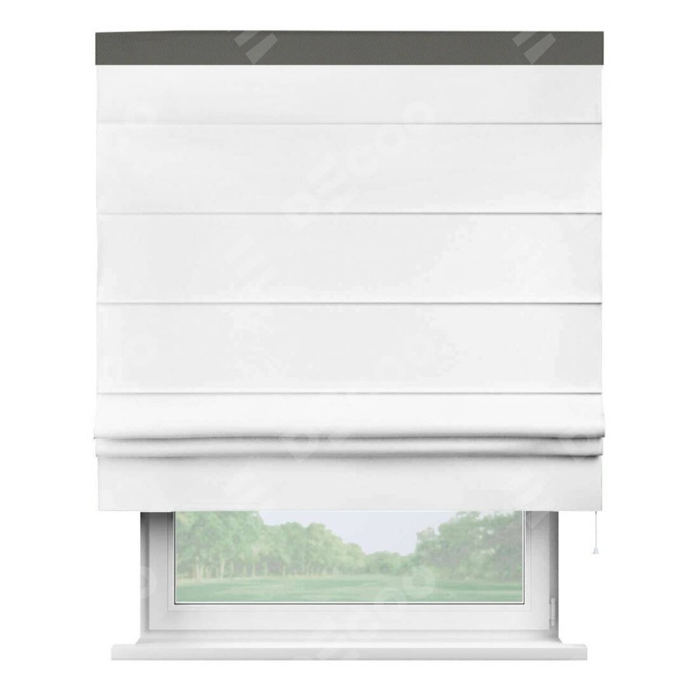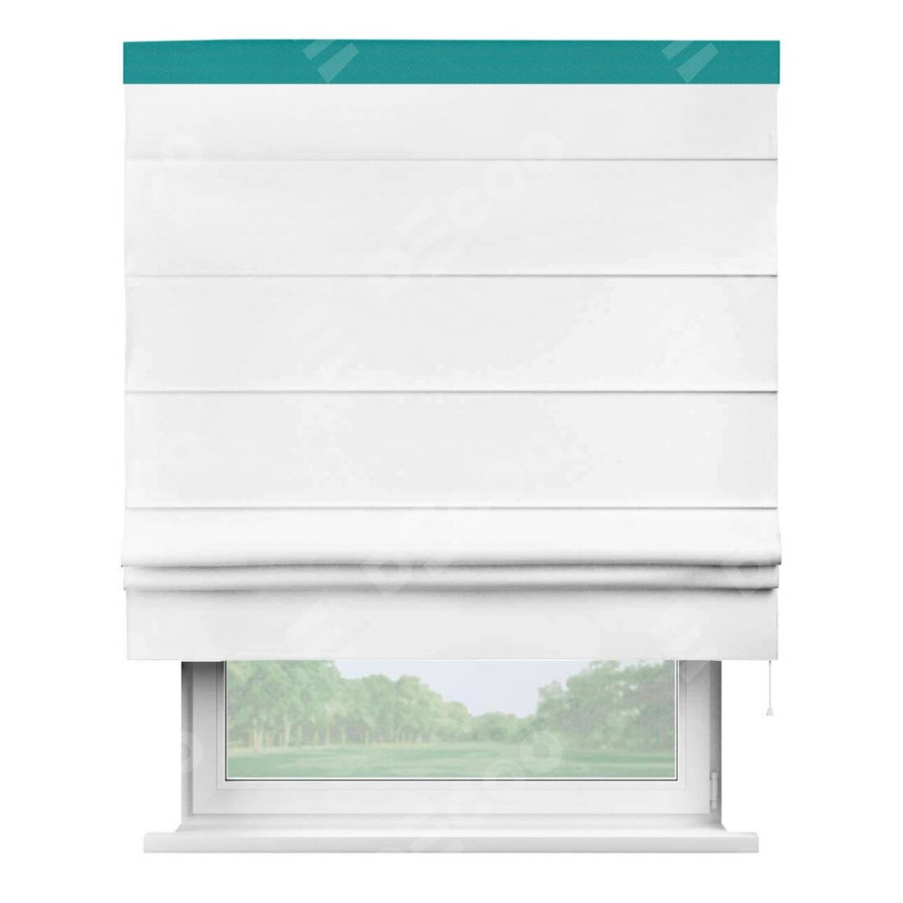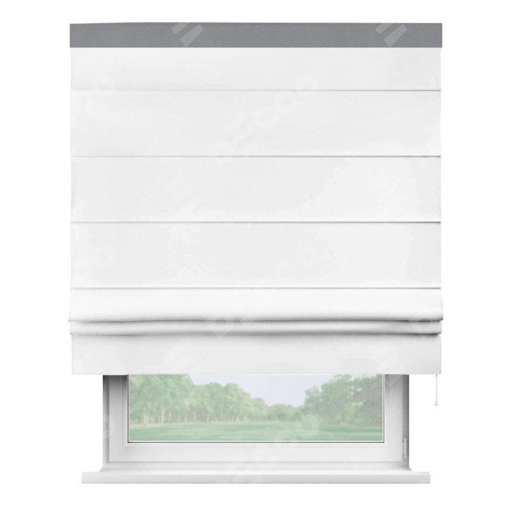 Римская штора «Кортин» для проёма, вайтаут однотонная белая с кантом Кинг