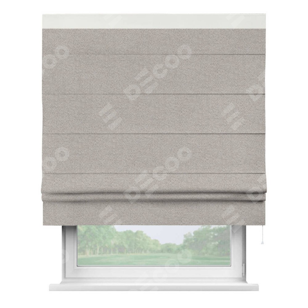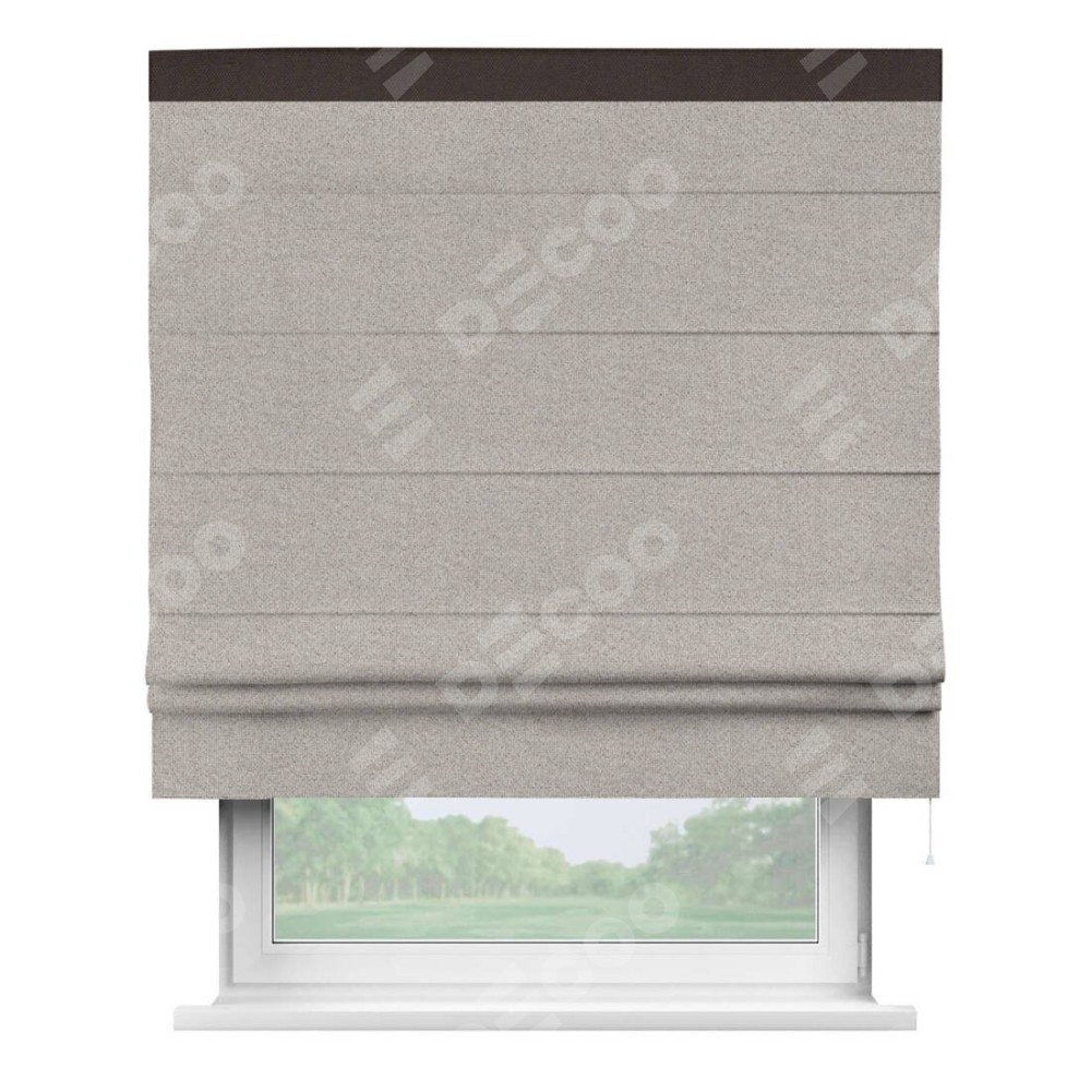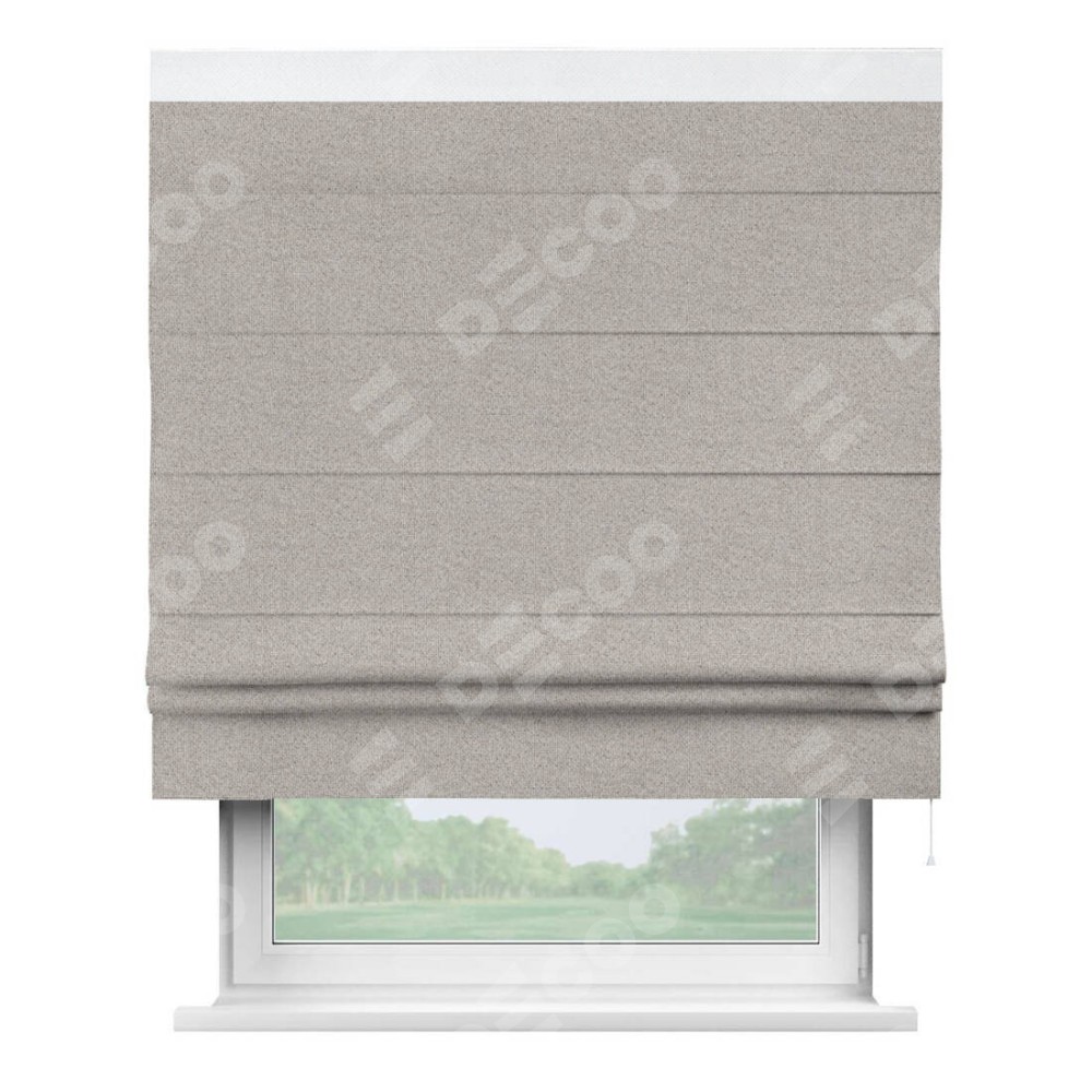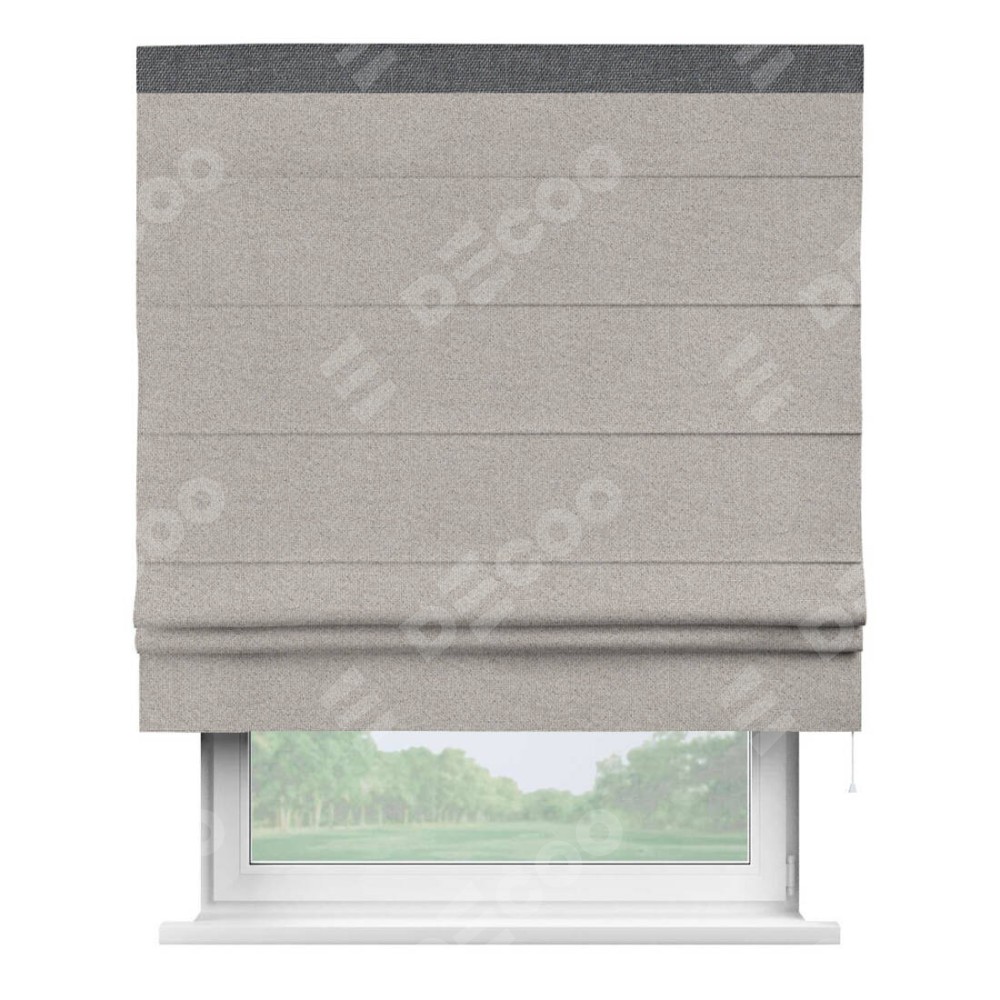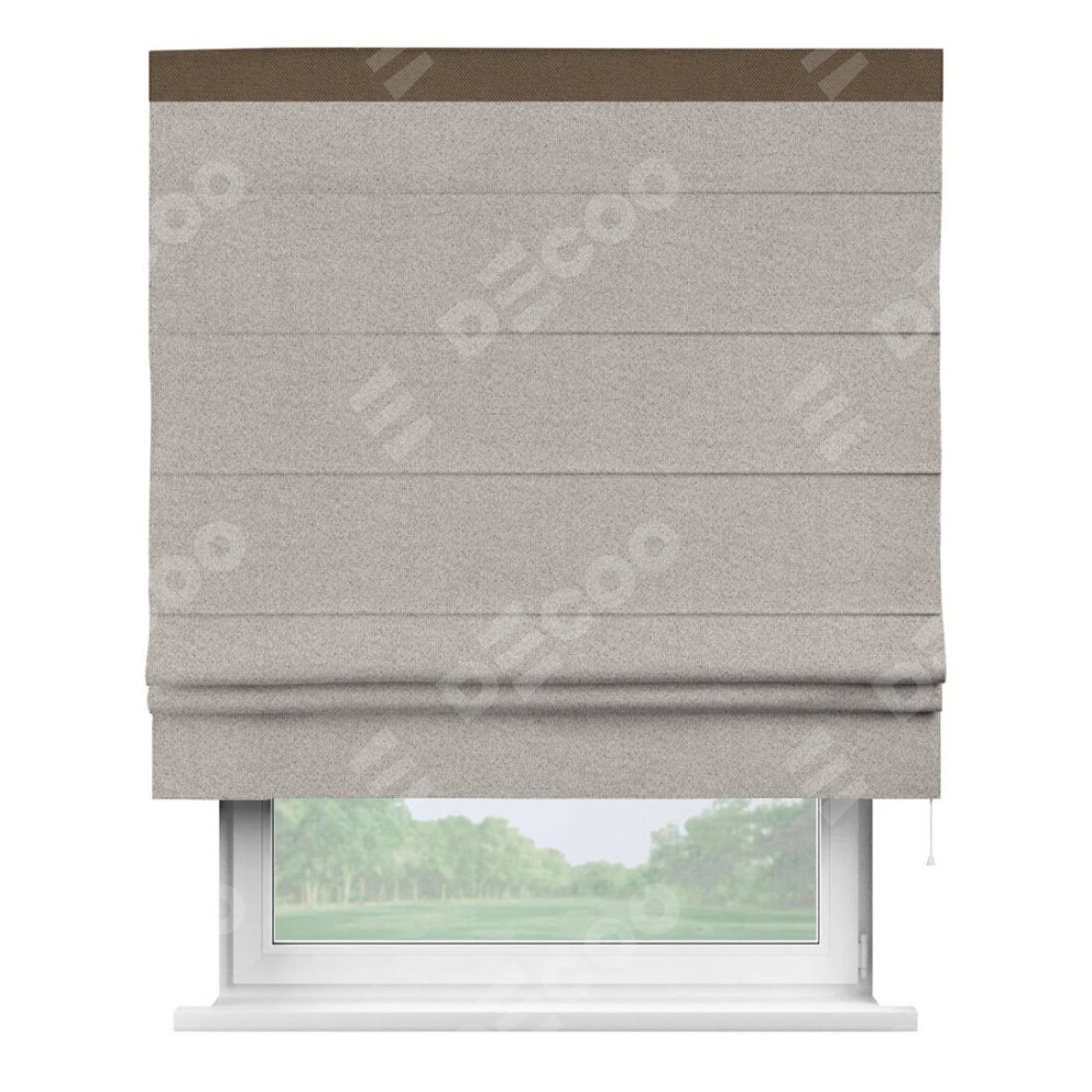 Римская штора «Кортин» для проема, лён димаут серо-бежевый с кантом Кинг