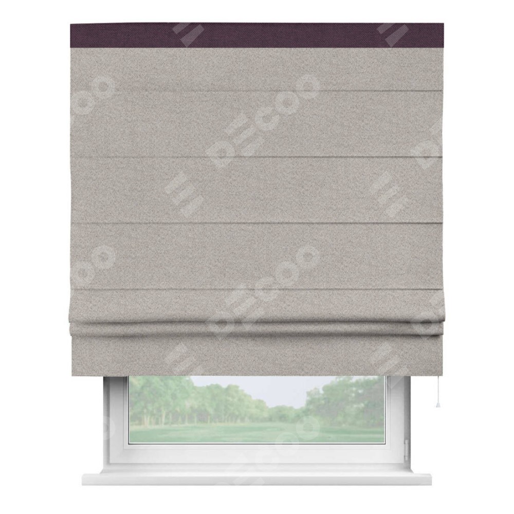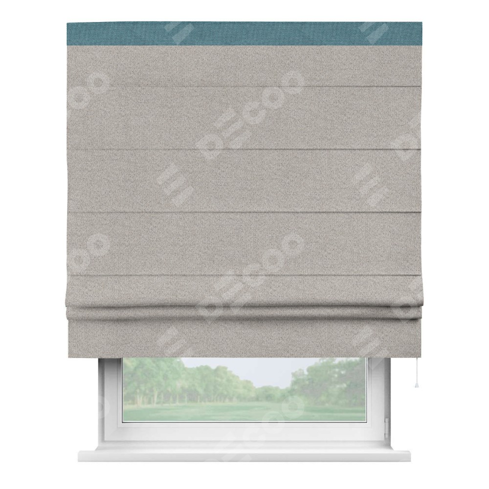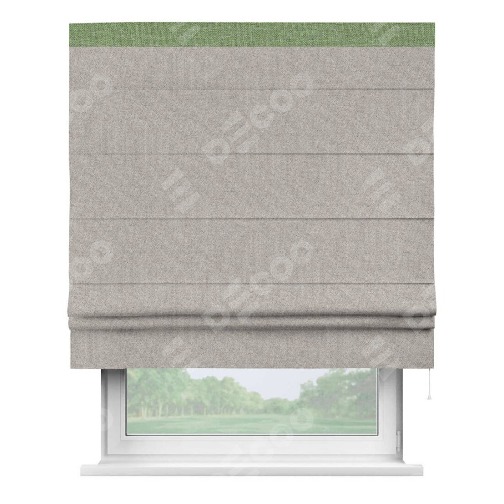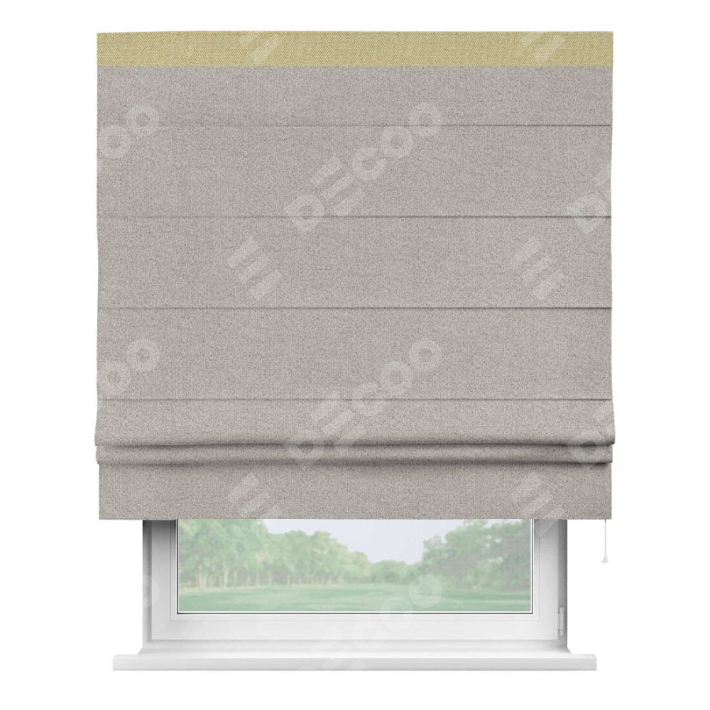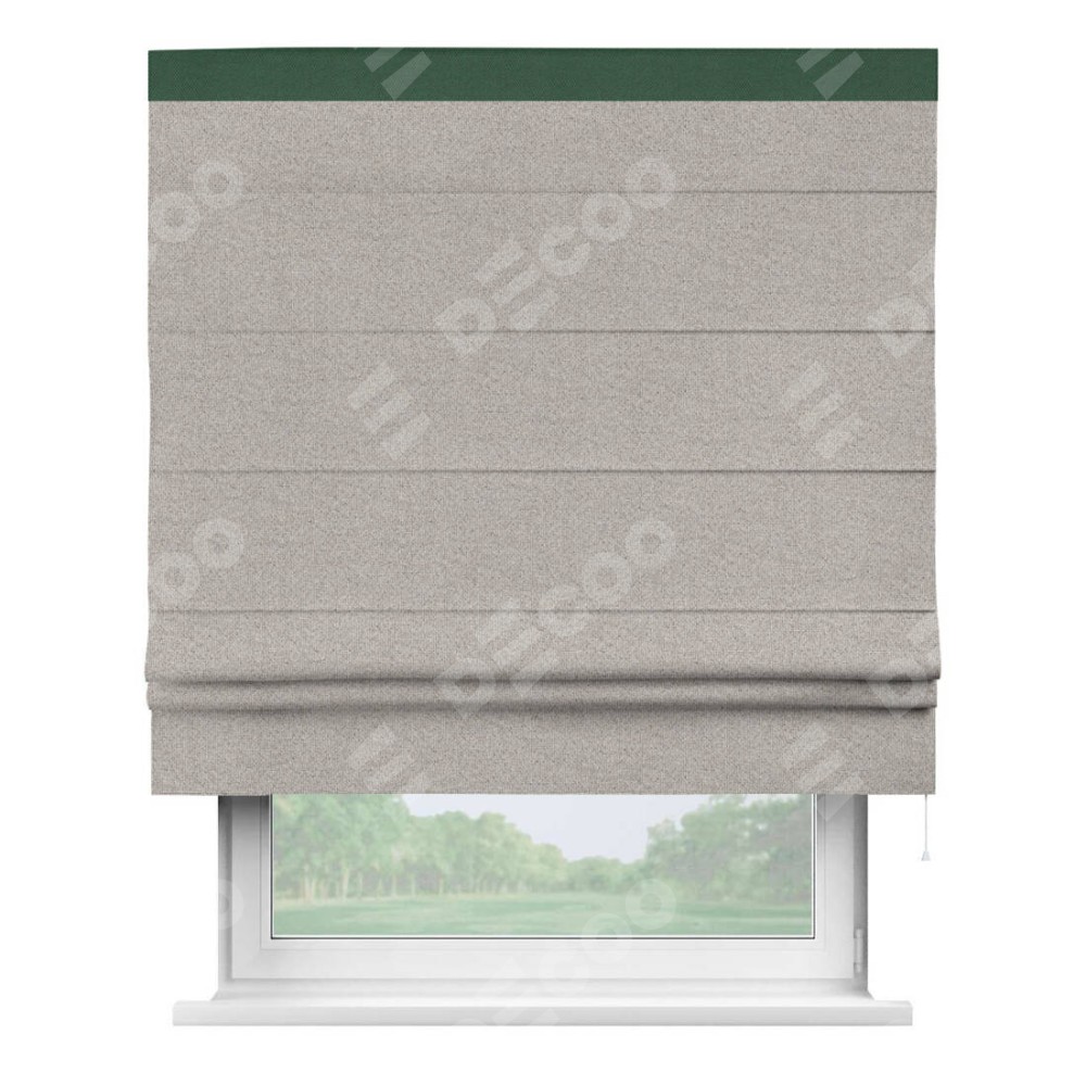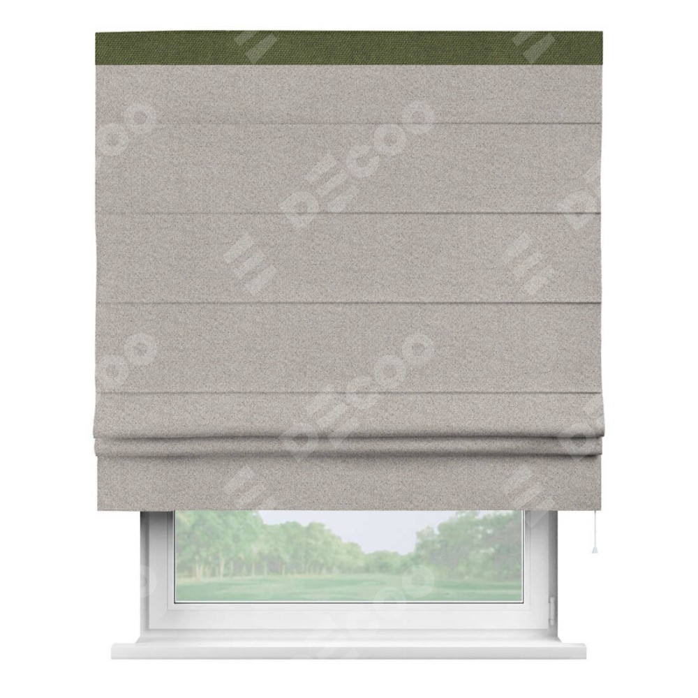 Римская штора «Кортин» для проема, лён димаут серо-бежевый с кантом Кинг
