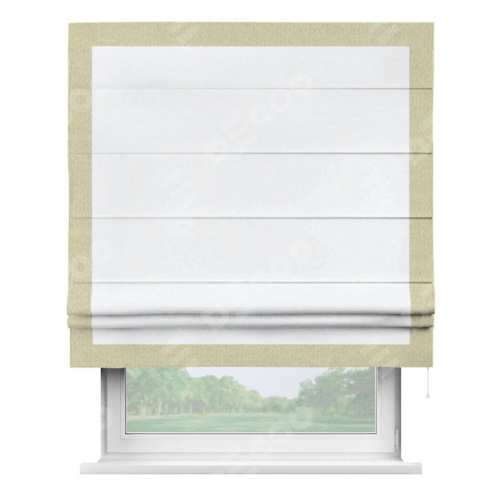 Римская штора «Кортин» для проема, лён димаут белый с кантом Чесс