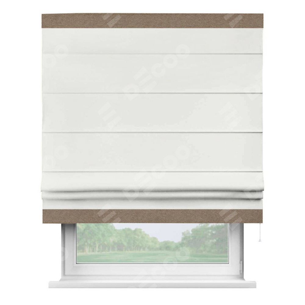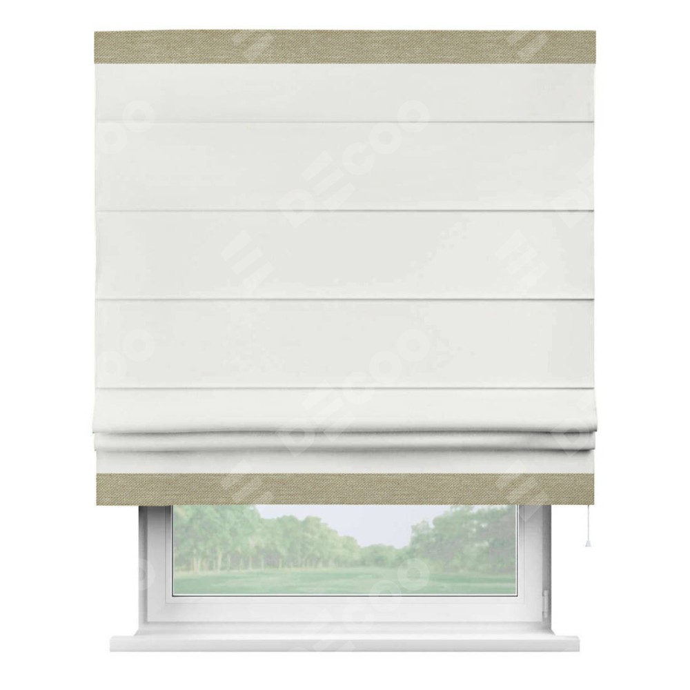 Римская штора «Кортин» для проема, лён димаут молочный с кантом Горизонт