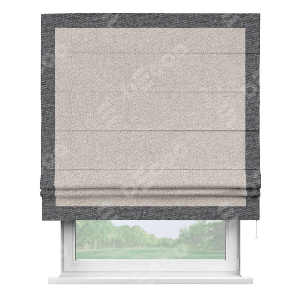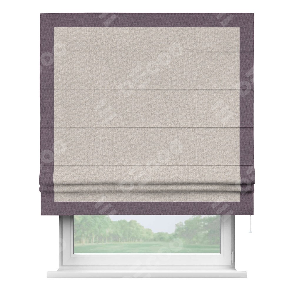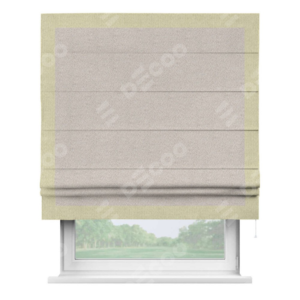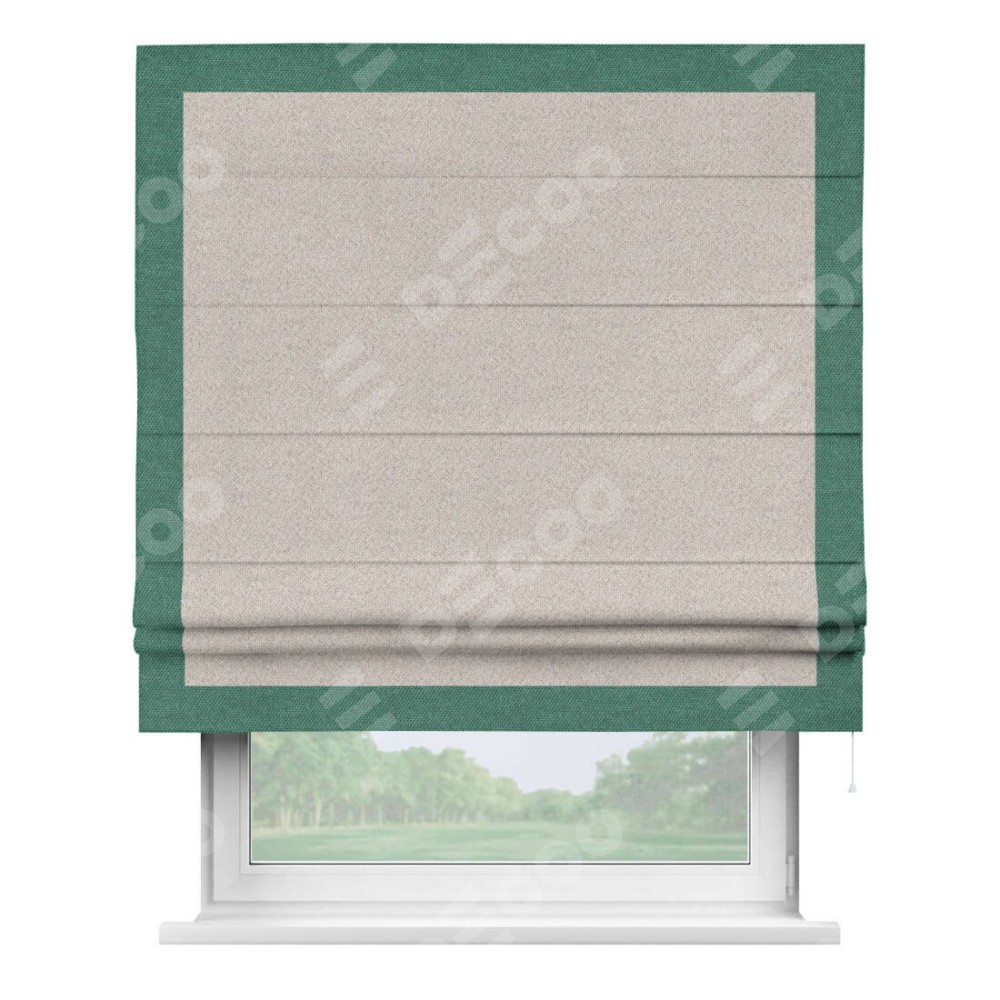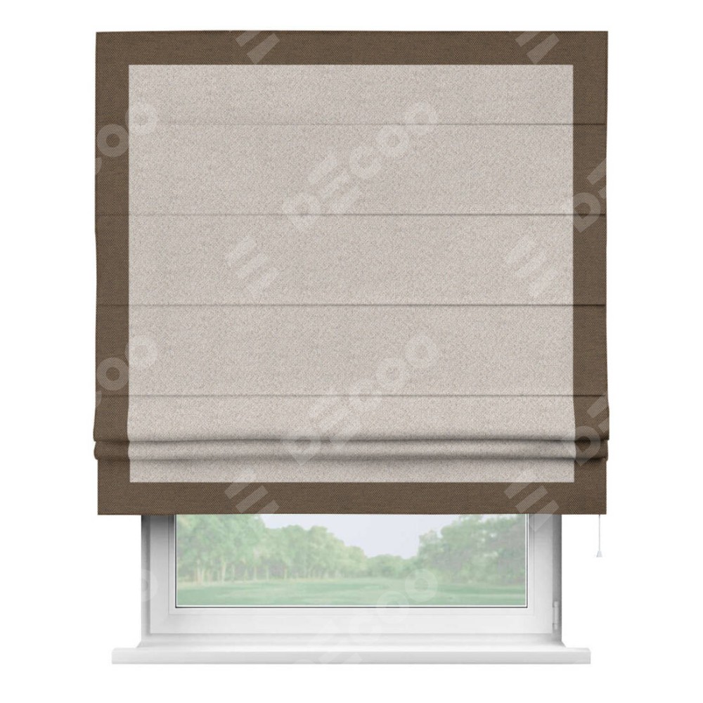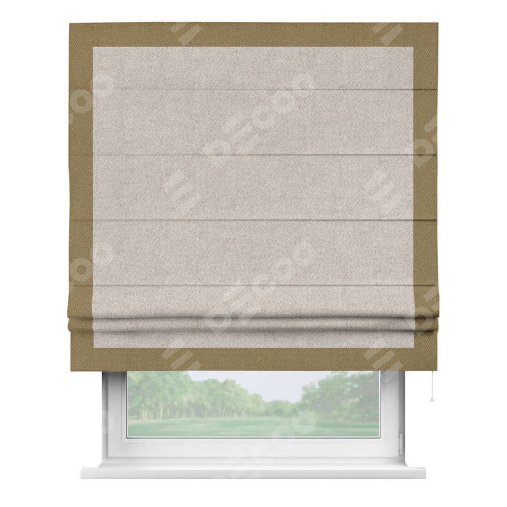 Римская штора «Кортин» для проема, лён димаут бежевый с кантом Чесс