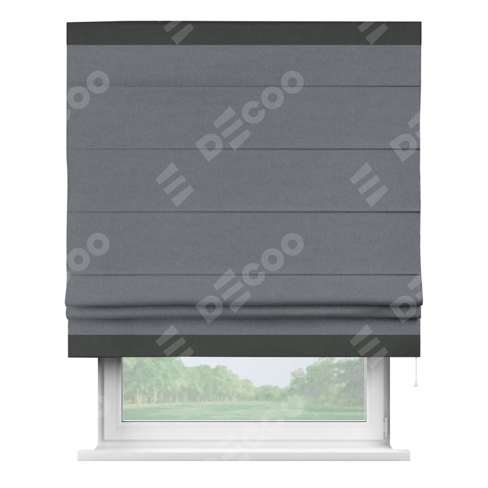 Классическая римская штора производителя «Cortin», пошита из ткани лён блэкаут тёмно-серый, артикул: 139663. Имеет универсальный механизм и подходит для монтажа: на потолок, на стену и в нишу.