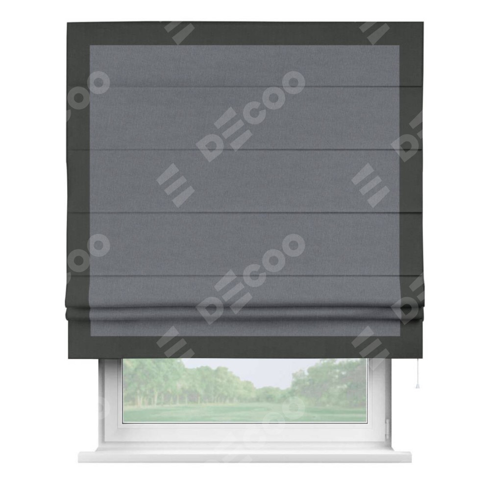Римская штора «Кортин» с кантом Чесс, для проема, лён блэкаут тёмно-серый