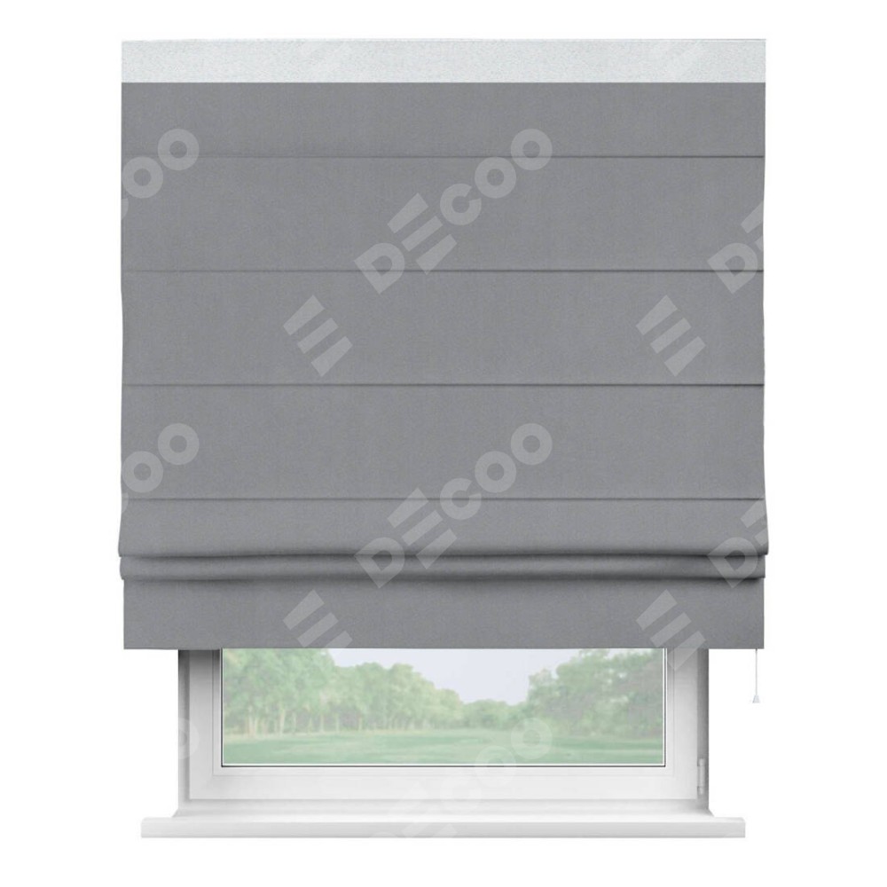 Классическая римская штора производителя «Cortin», пошита из ткани однотонный блэкаут серый, артикул: 146436. Имеет универсальный механизм и подходит для монтажа: на потолок, на стену и в нишу.