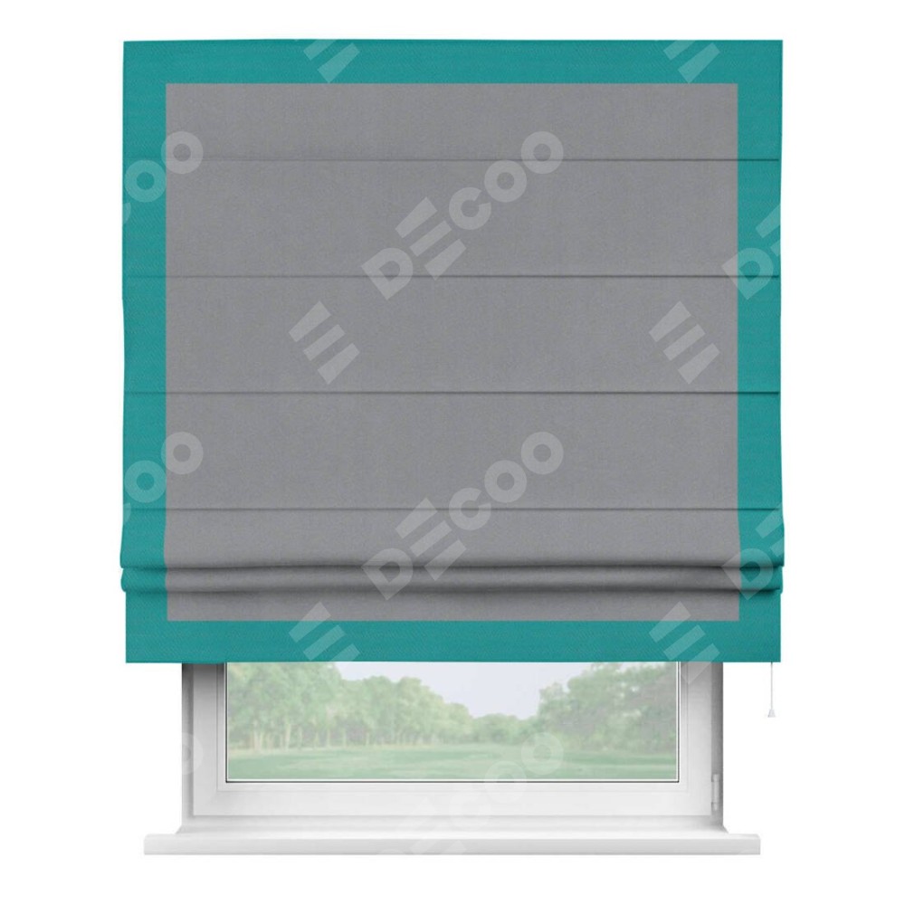 Римская штора «Кортин» для проема, блэкаут однотонный серый с кантом Чесс