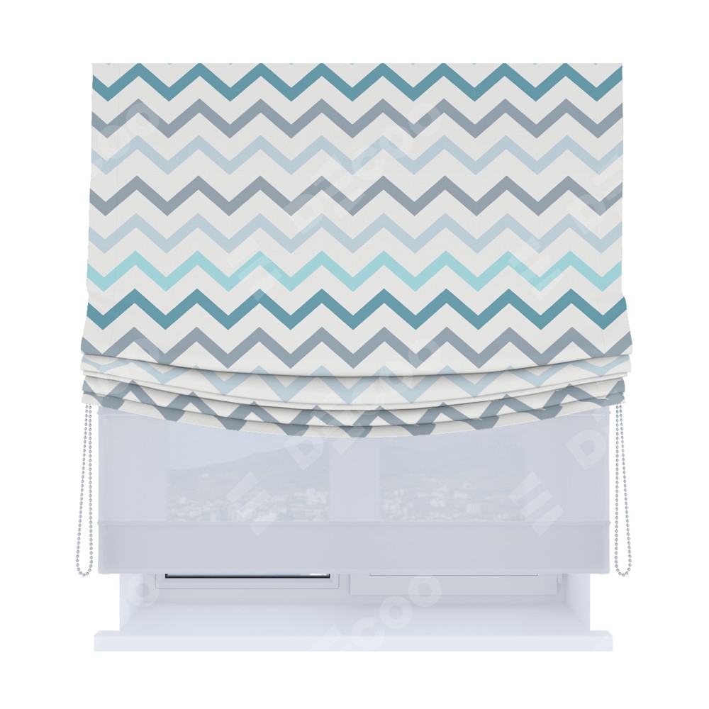 Римская штора «Кортин», день-ночь с мягкими складками, «Небесный шеврон»